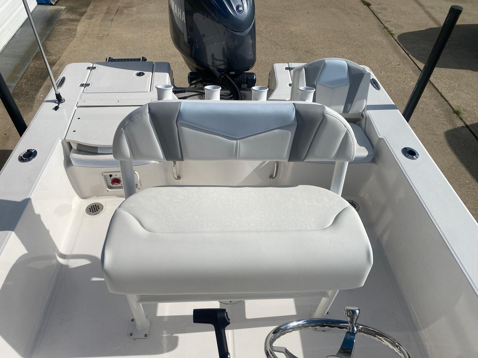 Under the hood, the **Robalo 206 Cayman STD** is powered by a Yamaha Four Stroke F150XC engine, delivering a potent 150 horsepower. This single-engine powerhouse ensures smooth and responsive performance, whether you're cruising across calm bays or navigating through lively waters. The integrated hydraulic steering system enhances maneuverability, giving you precise control and an effortless piloting experience. With the reliable Yamaha engine, you can trust that your Robalo boat for sale offers both power and efficiency for all your maritime adventures.