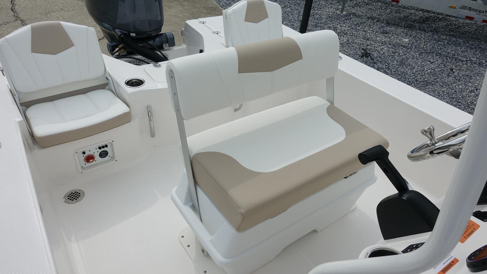 Practicality is at the heart of the Robalo 206 Cayman’s design. Its manageable length makes storage and docking a breeze, whether you’re keeping it at a marina or trailering it to your favorite launch site. The efficient Yamaha engine helps keep fuel costs down, so you can spend more time enjoying the water and less time worrying about expenses.The starboard dive swim platform with boarding ladder adds convenience for water activities, while the custom anchor simplifies mooring in various locations. The T-Top not only provides shade but also offers secure rod storage, keeping your gear organized and within reach. The removable bow seating backrest allows you to customize the layout for different activities, ensuring maximum comfort and utility.