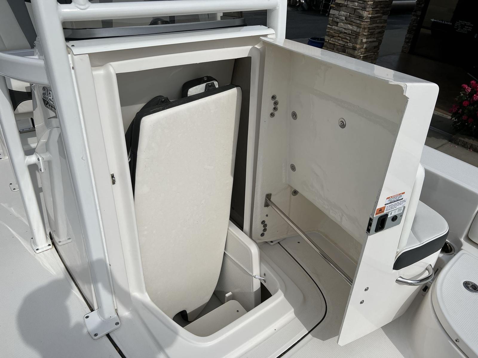 The Robalo 226 Cayman is as practical as it is stylish. Its manageable length of 22.5 feet makes it easy to dock, trailer, and store, while the upgraded trailer with aluminum wheels ensures smooth and reliable transport to and from the water. The efficient 200 horsepower engine provides excellent fuel economy, allowing you to spend more time enjoying your favorite activities and less time at the fuel dock. The thoughtful layout and storage options make it easy to keep your gear organized and accessible, so you can focus on having fun instead of searching for equipment.