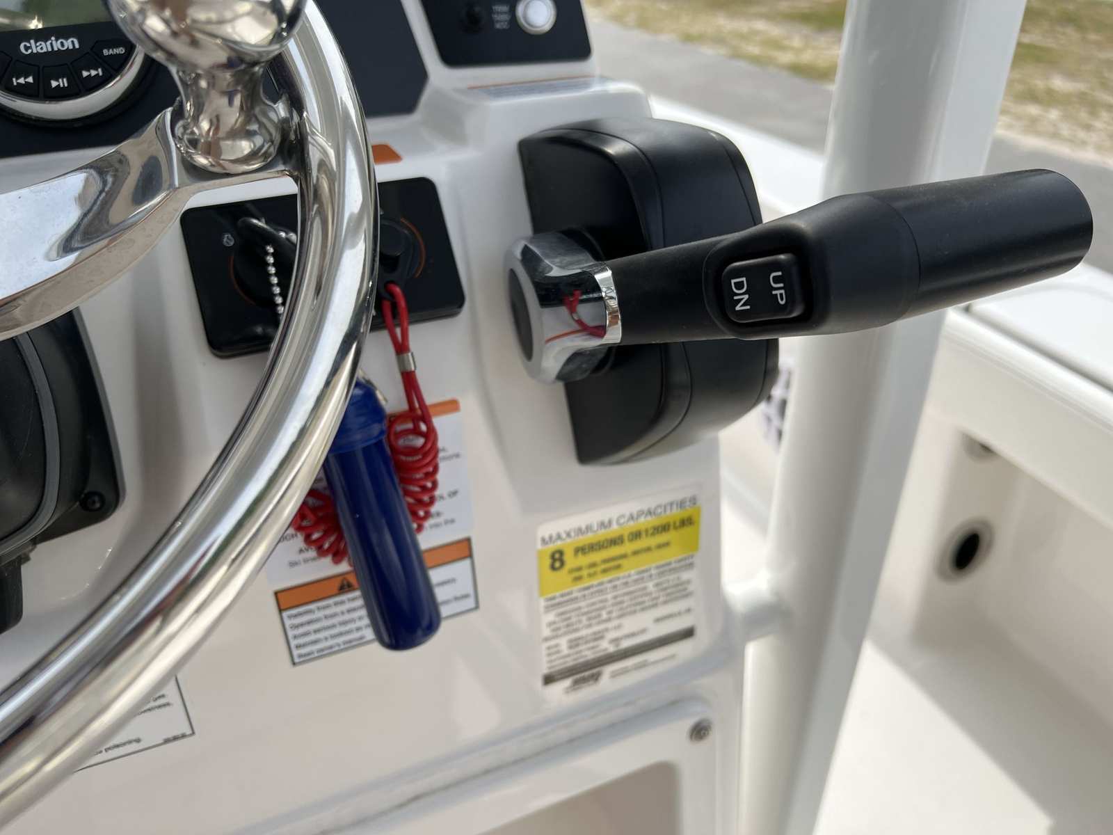 The 2025 Robalo 226 Cayman is loaded with special features that enhance both functionality and comfort. The removable bow seating backrest offers flexible seating arrangements, allowing you to customize the layout for fishing or relaxing. A custom anchor ensures secure and hassle-free anchoring, while stainless steel drink/rod holders provide convenient storage for your favorite beverages and fishing gear. The striking black canvas color adds a touch of sophistication, and the leaning post with dual flip-up bolsters (white powder coated) delivers ergonomic support for long days on the water.For those who appreciate style and durability, the spare tire kit with an aluminum wheel and the trailer upgrade with aluminum wheels provide peace of mind and a polished look when transporting your boat. The cockpit interior in Harbor Gray creates a modern and inviting atmosphere, while the hardtop underside gel color in Alloy Gray adds a unique visual flair. Anglers will love the Minn Kota Riptide Terrova 36V trolling motor with 112lb thrust and wireless remote, complete with a triple charger for extended fishing adventures.