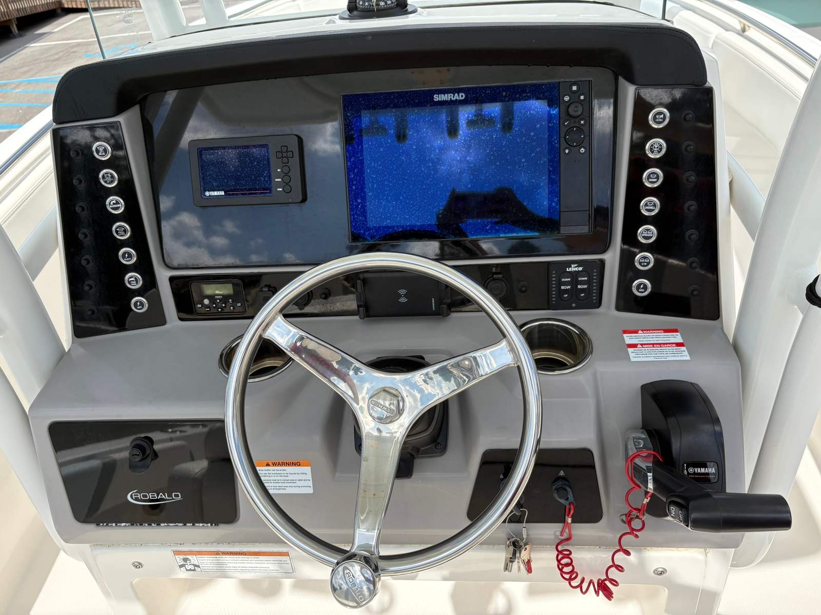 In summary, the 2022 Robalo 230 CC is a remarkable Center Console boat for sale that combines power, comfort, and versatility in a stylish package. With its 23-foot length, 250 horsepower engine, and thoughtfully designed features, this used Robalo boat for sale is perfectly suited for a wide range of activities, from fishing and family outings to leisurely cruises. The spacious layout, practical storage solutions, and user-friendly controls make ownership a pleasure, while the renowned Robalo quality ensures lasting value and reliability. Don’t miss your chance to experience the freedom and excitement that the Robalo 230 CC has to offer—contact your local dealer today to learn more and schedule a viewing.