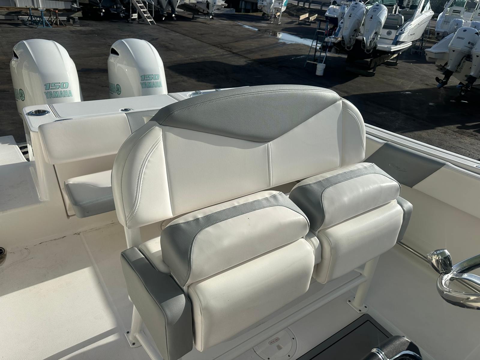 The 2021 Robalo 242 CC is as practical as it is fun. The center console design makes docking and maneuvering a breeze, even for those new to boating. Generous storage options keep your deck clutter-free, while the efficient layout ensures everything you need is within easy reach. The twin engines not only provide impressive power but also offer redundancy for added peace of mind on longer journeys. Whether you’re heading out for a quick afternoon cruise or planning an all-day fishing expedition, this center console boat for sale adapts to your needs with ease. Its manageable size makes trailering and storage straightforward, so you can spend more time on the water and less time worrying about logistics.
