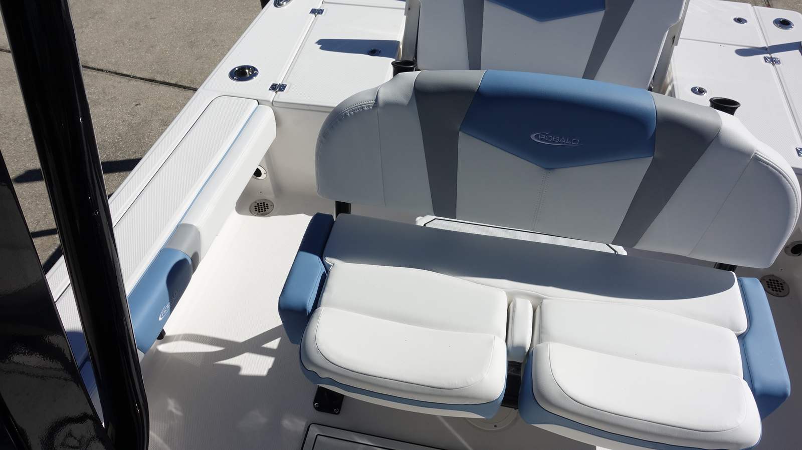 Powering the Robalo 246 Cayman is a single Yamaha F350XSA2 engine, finished in white and equipped with Digital Electric Steering. Boasting an impressive 350 horsepower, this engine ensures smooth, responsive handling and exhilarating acceleration. Whether you’re navigating shallow bays or heading out for a day of offshore fishing, the Yamaha F350XSA2 delivers reliable performance and efficiency. The advanced steering system allows for precise control, making docking and maneuvering effortless, even in challenging conditions.