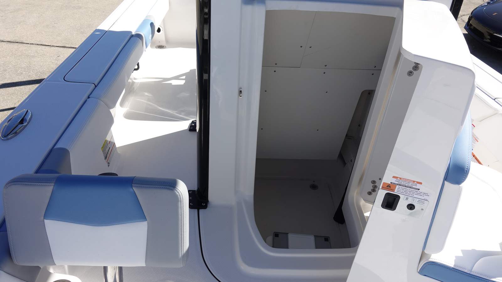 The Robalo 246 Cayman Bay Boat is packed with premium features designed to enhance your time on the water. The hard top, complete with black powder coating, provides shade and protection from the elements, while the Atlas Blue gel color on the underside adds a custom touch. The forward canvas fly in black canvas offers additional shelter, making it easy to enjoy your boat in any weather.Navigation is a breeze with the Garmin GPSMap 1243XSV, a state-of-the-art system that ensures you stay on course and find the best fishing spots with ease. Trim tabs with indicators allow you to adjust the boat’s attitude for optimal performance and comfort, while dual color LED underwater lights (two on each side) create a vibrant ambiance for evening cruises or night fishing excursions.The stainless steel steering wheel, featuring a soft grip and control knob, provides a comfortable and secure hold, enhancing your overall boating experience. Every detail, from the hull design to the cockpit layout, is engineered for maximum enjoyment and convenience.
