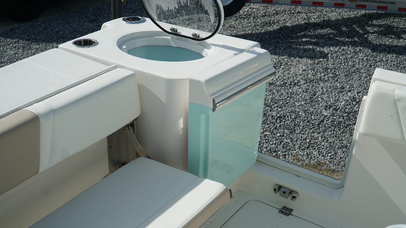 The Robalo 250 CC is as practical as it is fun. Its center console design provides excellent visibility and control, making it easy to navigate in various conditions. The pre-wiring for a trolling motor allows for seamless customization, whether you’re targeting specific fish species or simply want to enhance your boating experience. The stainless steel anchor ensures secure mooring, while the VHF radio keeps you connected for safety and communication.Storage solutions are thoughtfully integrated throughout the boat, allowing you to stow gear, tackle, and personal items with ease. The gravity discharge toilet system adds convenience for longer outings, and the forward canvas fly offers protection from the sun, making every trip more comfortable. Fuel efficiency and ease of docking are further enhanced by the twin-engine setup, providing smooth handling and control.