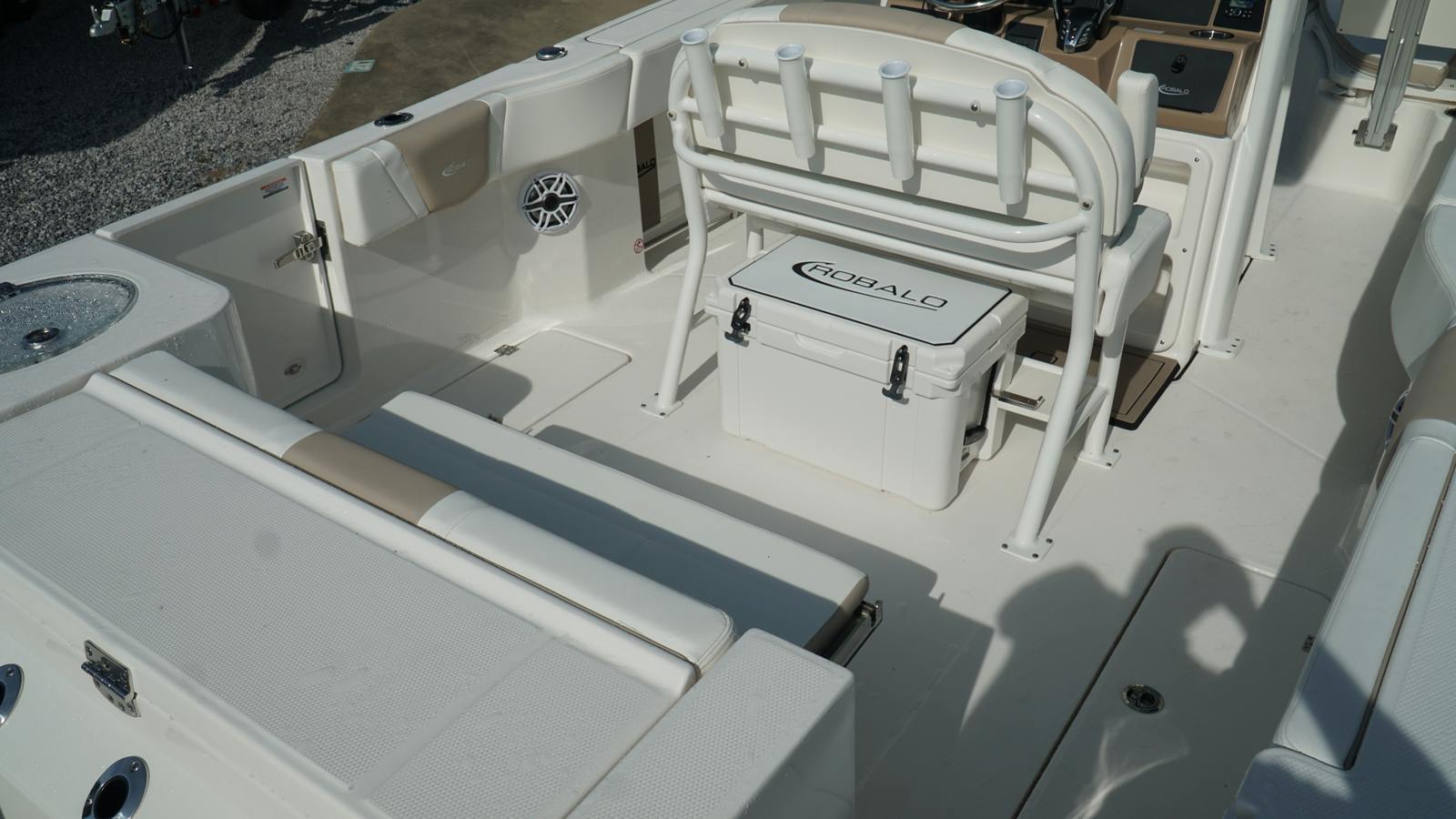Powering the Robalo 250 CC are two high-performance engines, each delivering a combined total of 300 horsepower. This robust setup ensures smooth acceleration, impressive top speeds, and reliable handling in a variety of water conditions. The twin-engine configuration provides enhanced maneuverability and stability, making docking and navigating tight spaces a breeze. Whether you’re chasing the catch of the day or enjoying a leisurely cruise, the Robalo 250 CC’s powerful engines guarantee a thrilling and responsive ride.