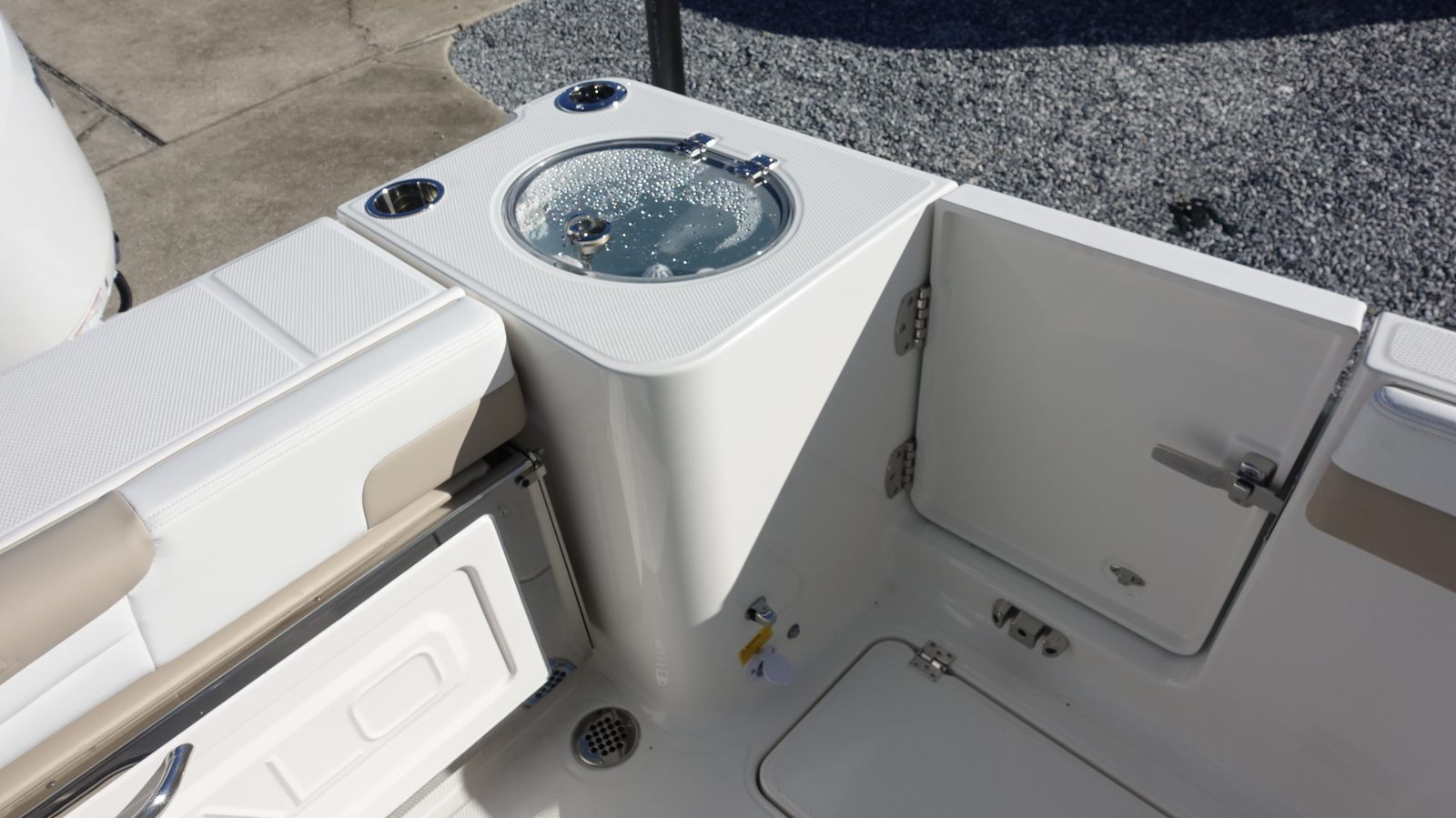 Power and precision define the performance of the Robalo 257 DC. Equipped with twin Yamaha F150XSA2 engines, each delivering 150 horsepower, this dual console boat boasts a total of 300 horsepower. The white engines not only enhance the boat’s visual appeal but also provide reliable, efficient, and smooth operation. The advanced electro hydraulic steering system ensures effortless handling and precise control, whether you are cruising at high speeds or navigating tight marinas. With this level of power and responsiveness, the Robalo 257 DC is ready to tackle everything from leisurely coastal cruises to action-packed water sports.