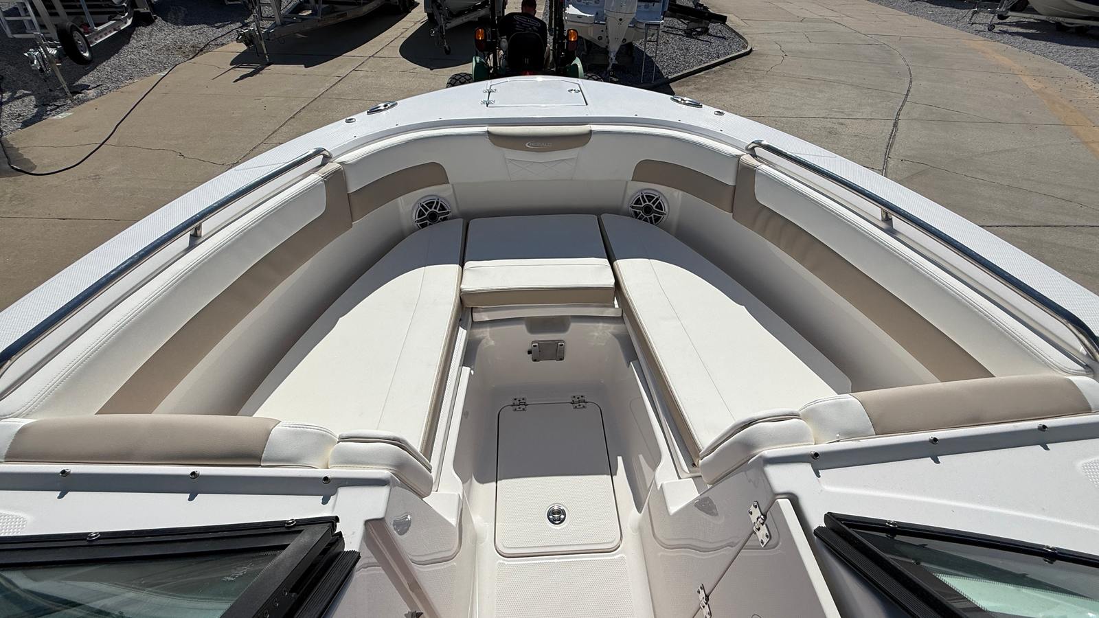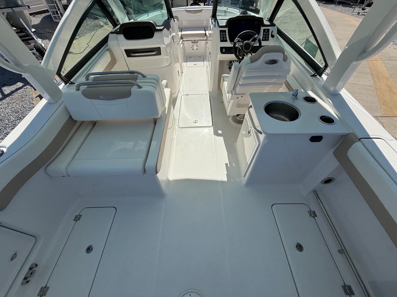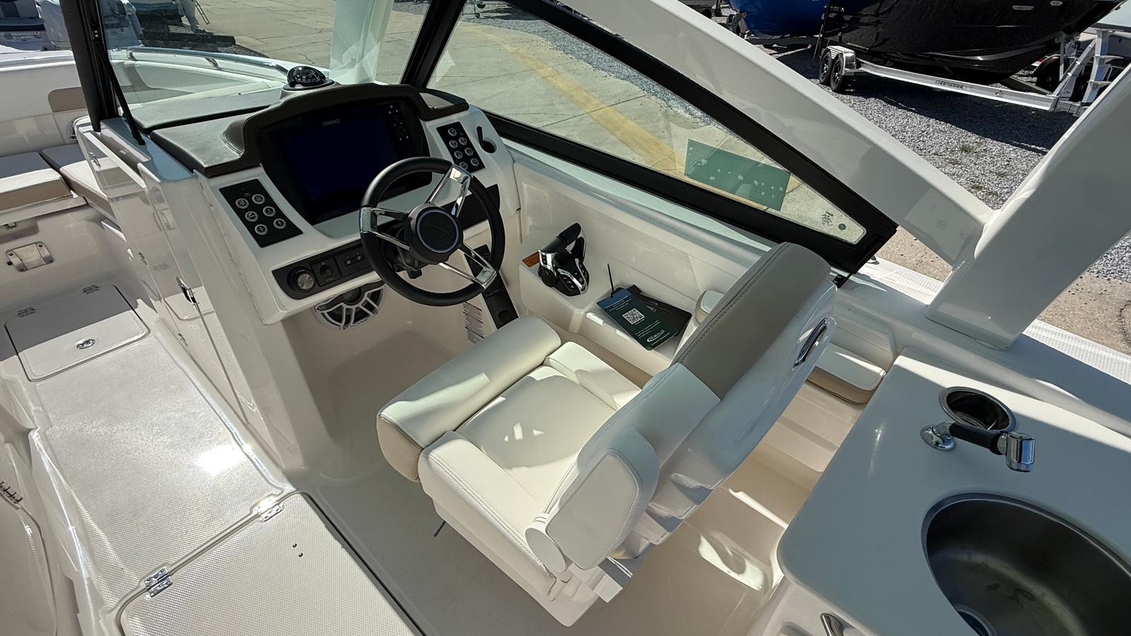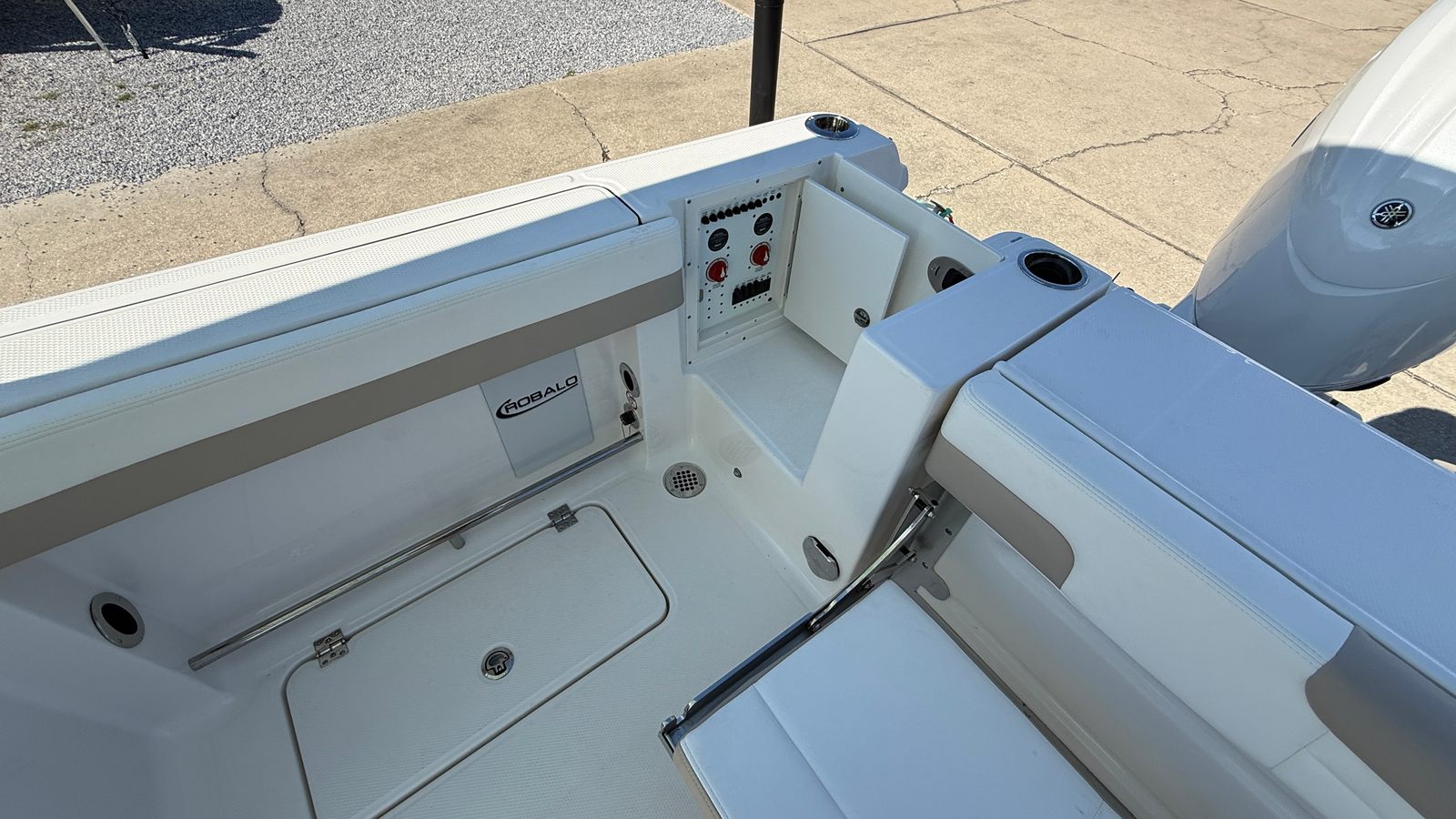 The Robalo 257 DC is designed with practicality in mind, making ownership easy and enjoyable. The aluminum tandem axle trailer simplifies transport and storage, allowing you to take your boat wherever adventure calls. The stowable boarding ladder and windlass package make docking and anchoring hassle-free, so you can spend more time enjoying the water and less time managing logistics.Fuel efficiency is enhanced by the twin Yamaha engines, helping you save on operating costs while maximizing your time on the water. The spacious deck and smart storage solutions ensure that all your gear is organized and accessible, whether you’re packing for a day of fishing, water sports, or a relaxing cruise. The durable construction and premium finishes mean your Robalo boat will maintain its beauty and performance for years to come.