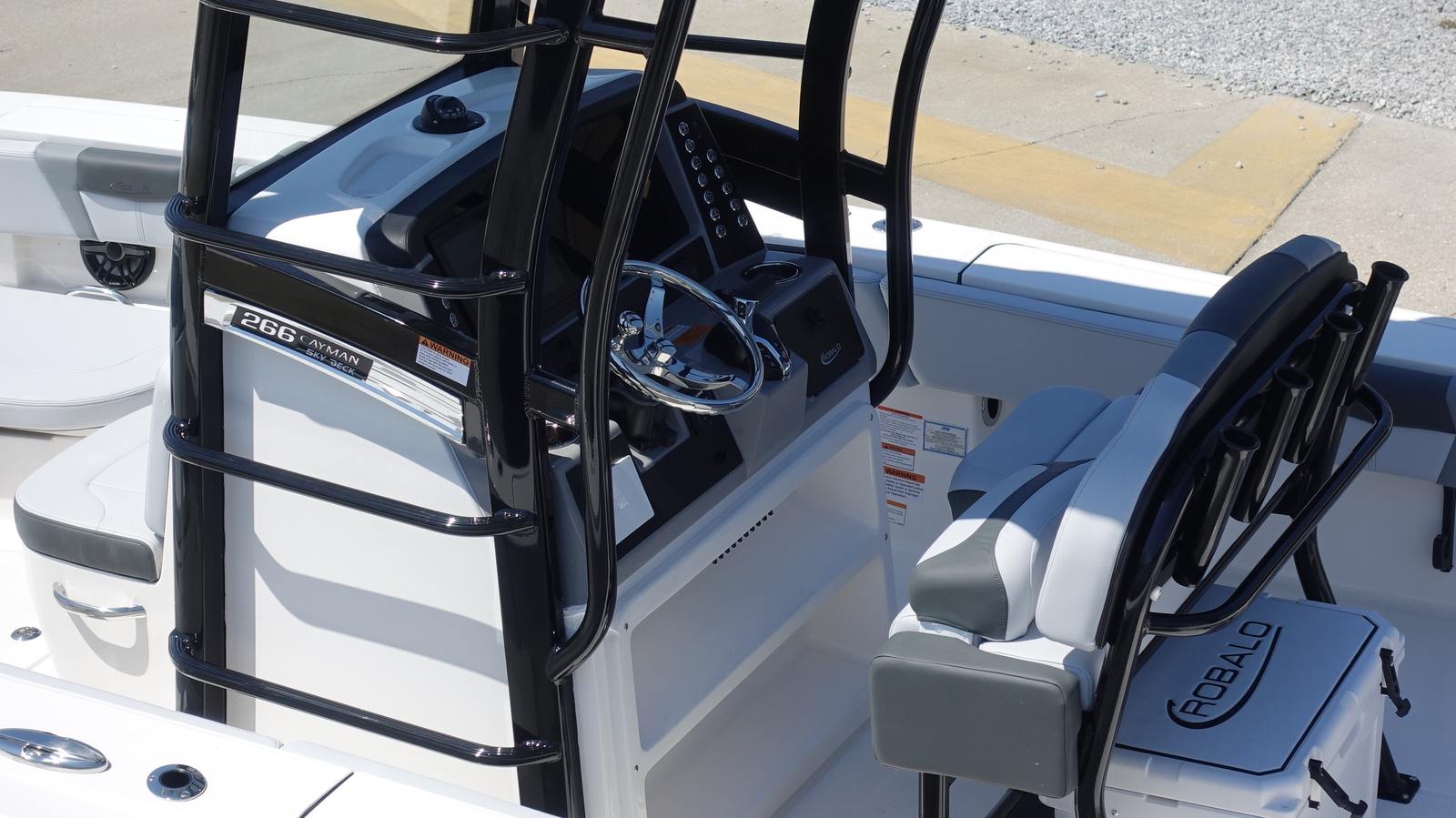 The Robalo 266 Cayman SD is a brand-new 2026 model, measuring an impressive 26.5 feet in length. This bay boat is engineered for both serious anglers and families who love to explore coastal waters, bays, and inshore environments. With its sleek lines and modern profile, the 266 Cayman SD is a head-turner at any marina or dock. The solid hull features a striking Atlas Blue Gel Coat, giving the boat a bold and distinctive look that’s sure to impress. The cockpit interior is finished in Harbor Mist, offering a sophisticated and inviting atmosphere for all your guests.