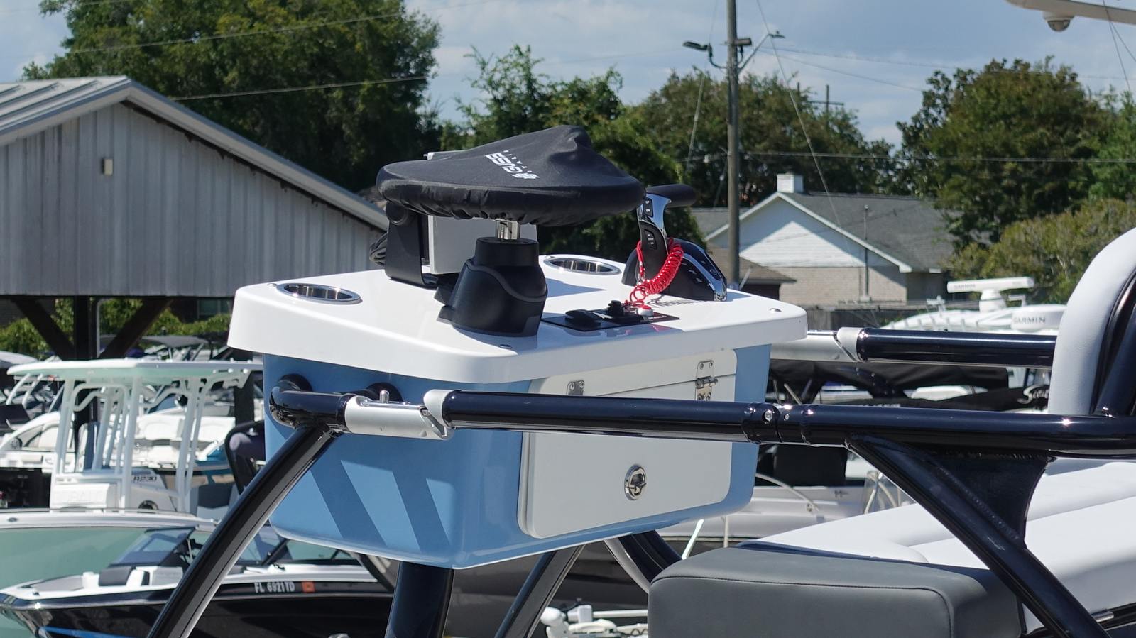 The Robalo 266 Cayman SD is packed with premium features designed to enhance your boating experience. The hard top is complete with black powder coating, offering both durability and a sleek aesthetic. The underside of the hardtop is finished in Atlas Blue Gel Color, complementing the hull and adding a touch of elegance overhead. For added comfort and protection from the elements, the forward canvas fly is crafted from black canvas, with matching canvas accessories available if equipped. Navigation and electronics are top-notch, featuring a Garmin GPSMap 1243XSV at the helm and a Garmin GPSMap 943XSV at the upper station. These advanced systems provide accurate chart plotting, fish finding, and seamless connectivity, ensuring you’re always in control and informed on the water.