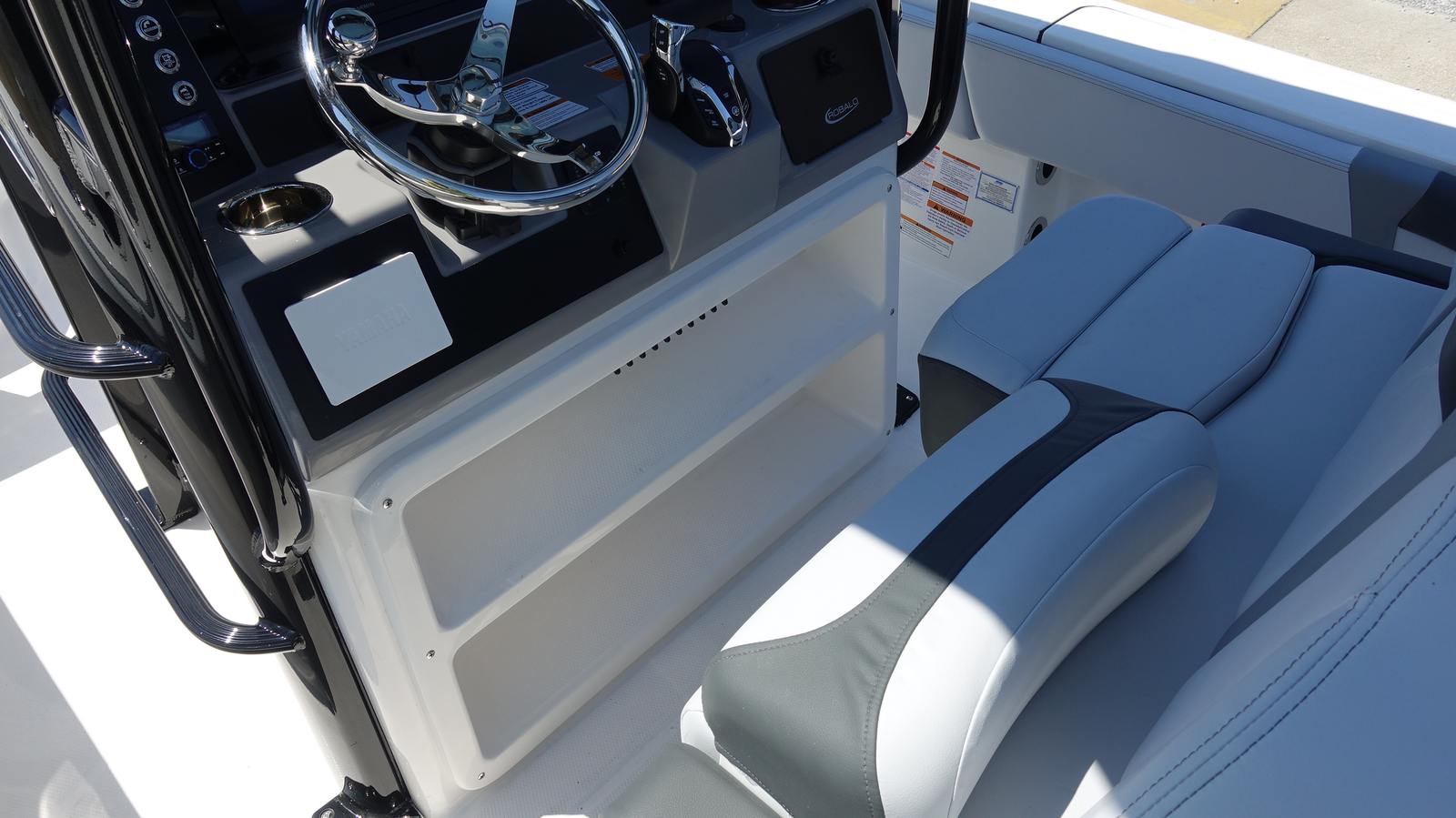 At the heart of this Robalo bay boat is a single Yamaha F450 engine, finished in black and equipped with advanced Digital Electric Steering. With 450 horsepower at your command, the 266 Cayman SD delivers exhilarating speed, smooth acceleration, and responsive handling. Whether you’re cruising to your favorite fishing spot or enjoying a day of water sports, this engine ensures reliable performance and efficiency. The Digital Electric Steering system provides precise control, making navigation effortless even in challenging conditions. This powerful setup is perfect for those who demand both excitement and reliability from their bay boat.
