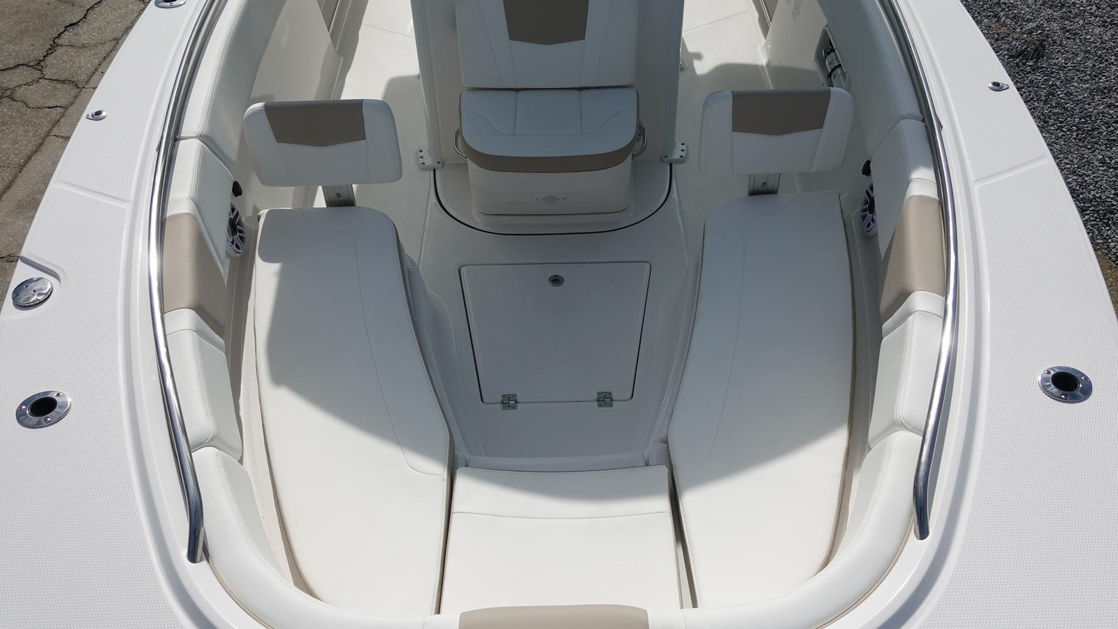 This 2025 Robalo 270 CC comes loaded with special features designed to enhance your boating experience. The Simrad NSS12 EVO3S Dual Screens offer advanced navigation and fish-finding capabilities, putting critical information at your fingertips. The Windlass Package makes anchoring effortless, while the pre-wire for a trolling motor adds versatility for anglers who want to customize their setup. Overboard discharge ensures easy waste management, and the dual color LED underwater lights (2 each) create a vibrant atmosphere for evening cruises or night fishing.The hardtop underside features a striking Seafoam Green gel color, adding a touch of style and personality to the boat’s appearance. Canvas accessories in black (if equipped) provide protection from the elements and complement the boat’s modern look. The included aluminum triple axle trailer with aluminum wheels makes transporting your Robalo 270 CC safe and convenient, whether you’re heading to a new destination or storing your boat for the season. Backed by a 5-year premium level limited component warranty, you can enjoy peace of mind knowing your investment is protected.