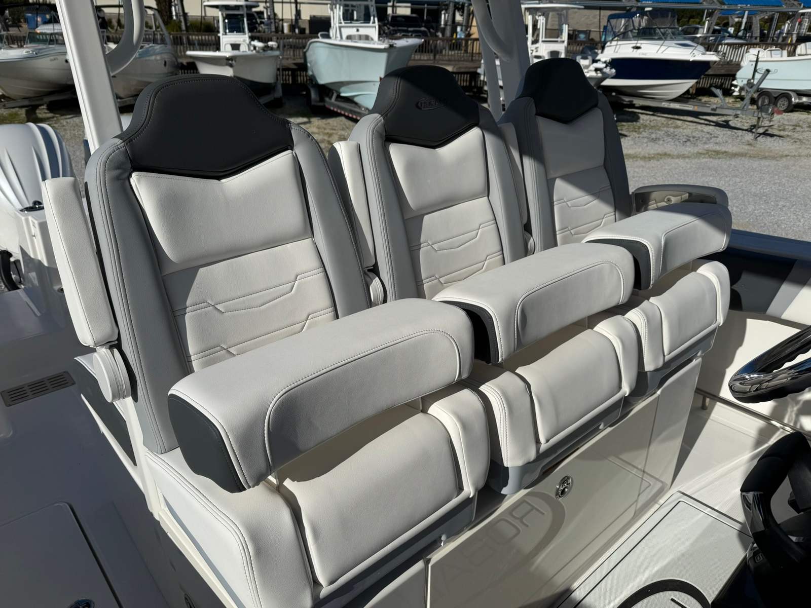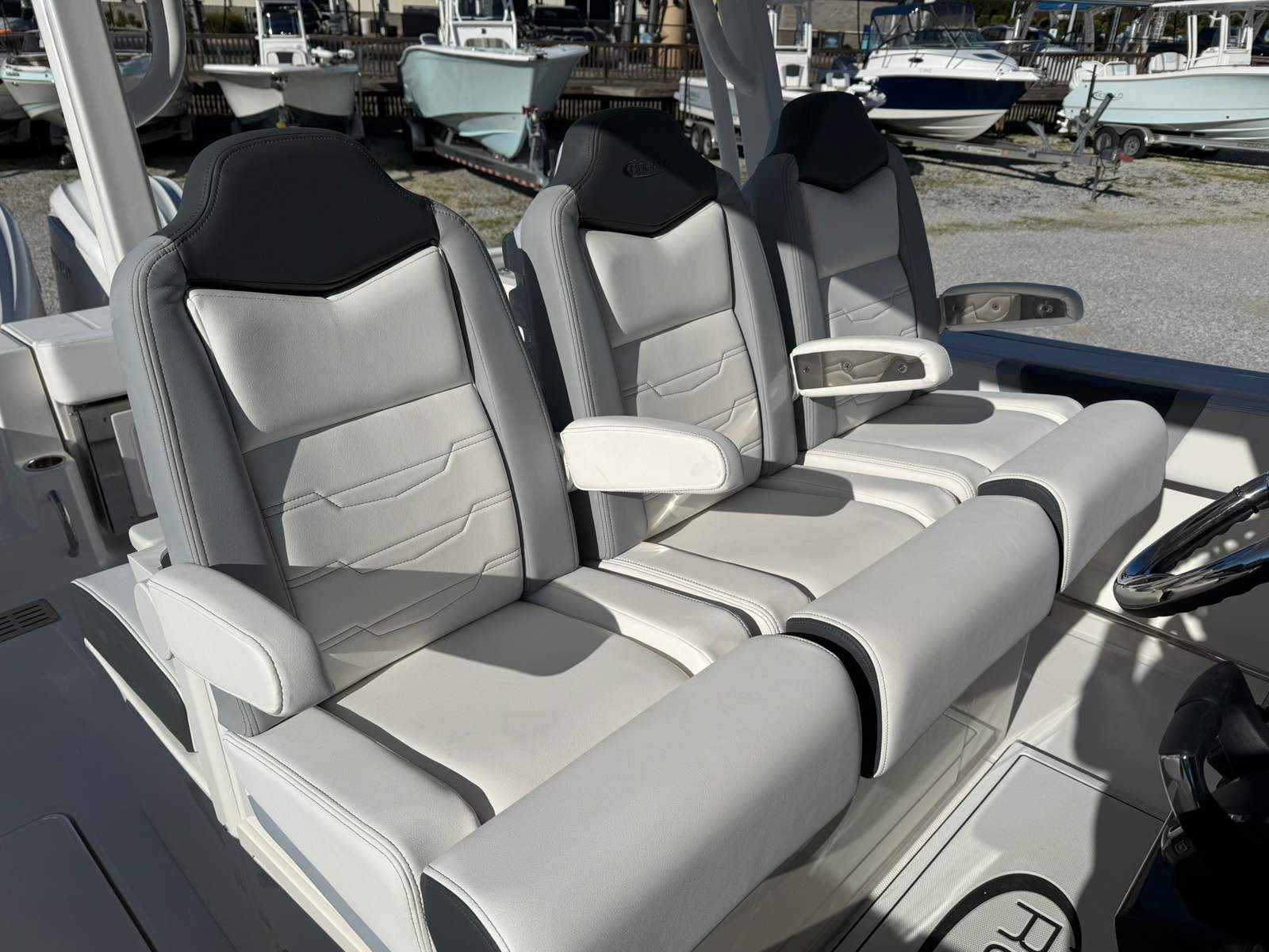 Owning the Robalo 300 CC means embracing a lifestyle of adventure, relaxation, and social connection. This center console boat offers ample space for family and friends, with a layout that encourages both fishing and entertaining. The spacious deck provides plenty of room for casting lines, setting up gear, or simply lounging in the sun. The ergonomic helm, complete with dual Garmin screens and a Seadek mat, ensures that every journey is comfortable and enjoyable. The combination of powerful Yamaha engines and advanced steering makes handling effortless, whether you are navigating tight marinas or open waters. With its modern design and luxurious finishes, the Robalo 300 CC is sure to turn heads wherever you go.