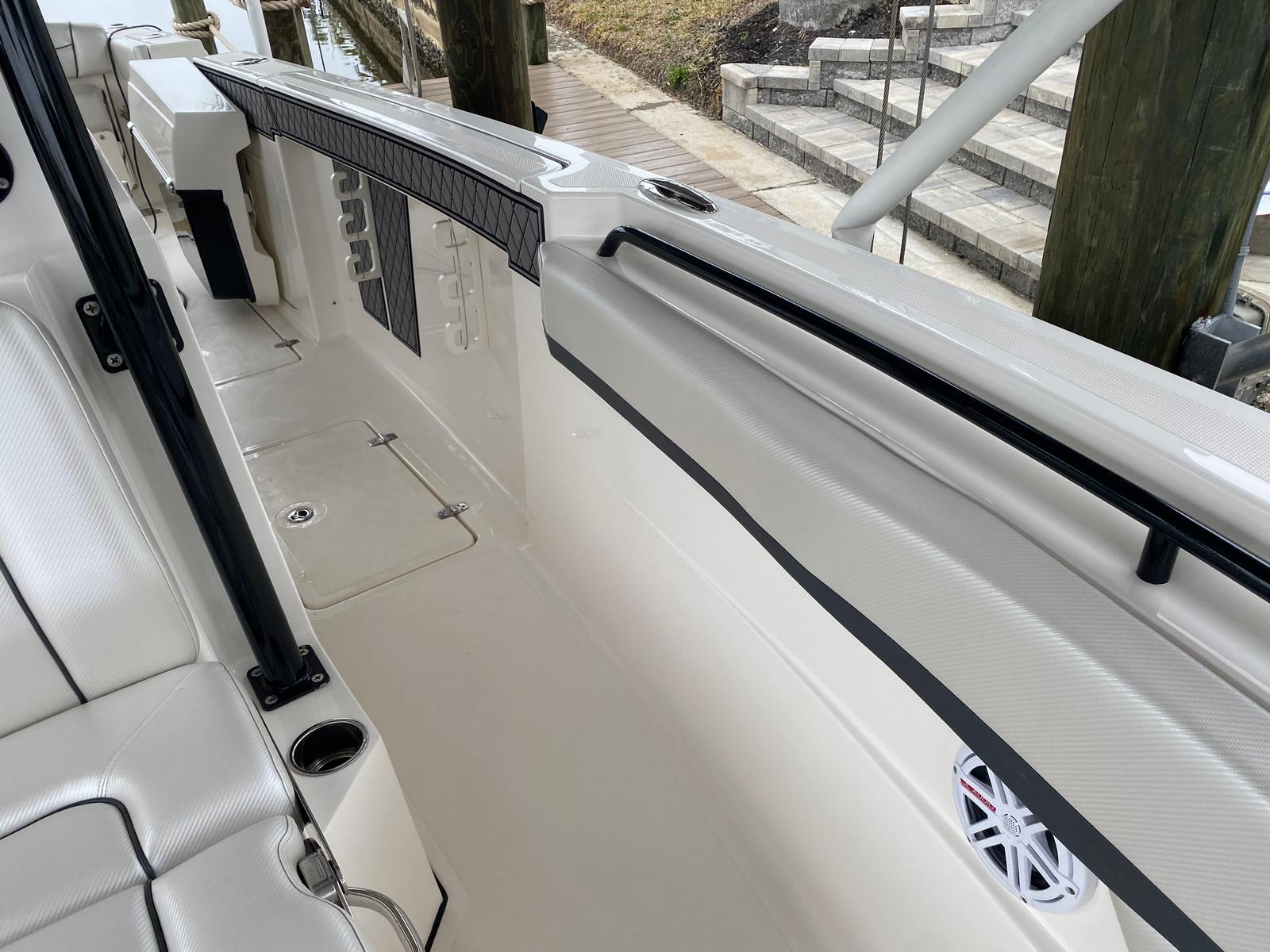 When it comes to performance, the Scarab 302 Fisherman truly shines. Equipped with twin engines delivering a combined 700 horsepower, this Center Console boat is built for speed and agility. The engines have only 350 hours, indicating plenty of life left for years of reliable operation. Whether you’re navigating coastal waters, heading offshore, or simply enjoying a day on the lake, the Scarab 302 Fisherman offers impressive acceleration and handling. The dual-engine setup ensures smooth cruising and enhanced maneuverability, making docking and tight turns effortless. For those who crave excitement and power on the water, this Scarab boat for sale is sure to deliver.
