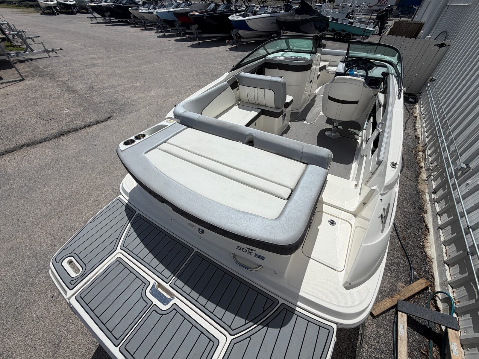 Owning a Bowrider like the Sea Ray SDX 240 opens up a world of fun and excitement. The spacious layout is perfect for socializing, with plenty of seating for guests to relax and enjoy the ride. The open bow design invites sunbathing, picnics, and laughter, making every outing a memorable event. The Bluetooth stereo system adds a lively atmosphere, letting you enjoy your favorite tunes while cruising or anchored at your favorite spot. The Bimini top ensures everyone stays cool and comfortable, even on the hottest days. With the included cover and tandem axle trailer, you’ll appreciate the ease of storage and transport, making it simple to take your boat wherever adventure calls.