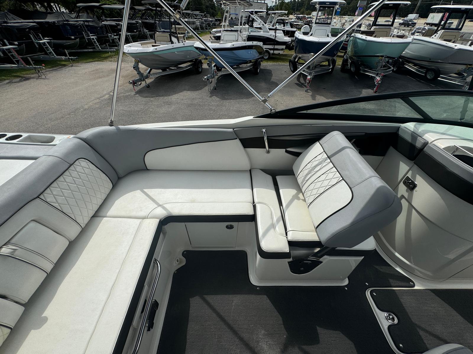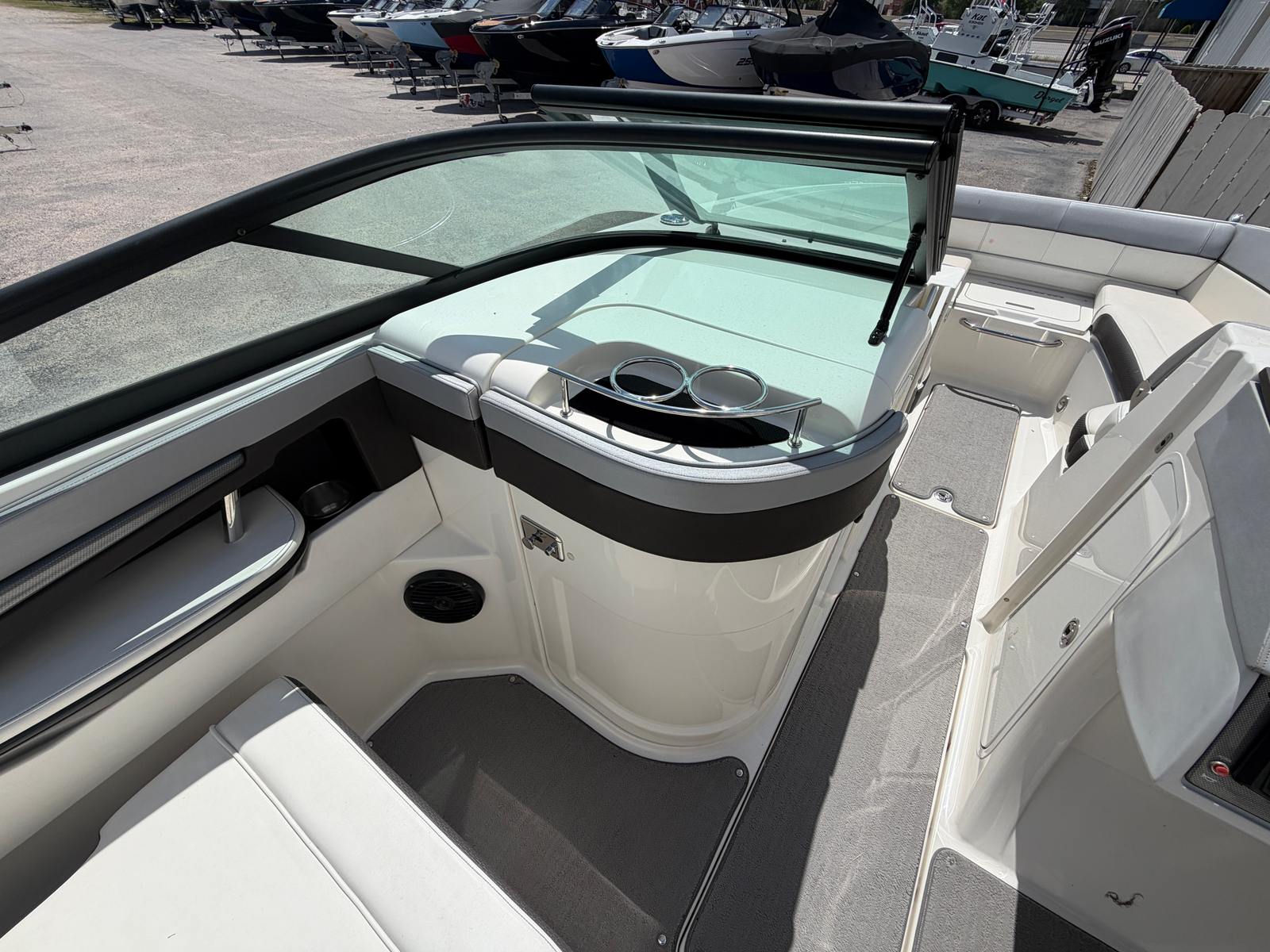 The Sea Ray SDX 240 is designed with practicality in mind, making ownership as enjoyable as the time spent on the water. The tandem axle trailer with swing tongue offers easy towing and maneuverability, whether you’re heading to a nearby lake or exploring new coastal destinations. The cover protects your boat from the elements, reducing maintenance and preserving its appearance. Annual service means you can trust the engine’s reliability, while the dual prop system provides efficient fuel consumption and improved handling. Docking is a breeze thanks to the responsive controls, and the spacious deck offers plenty of room for gear, coolers, and water toys.