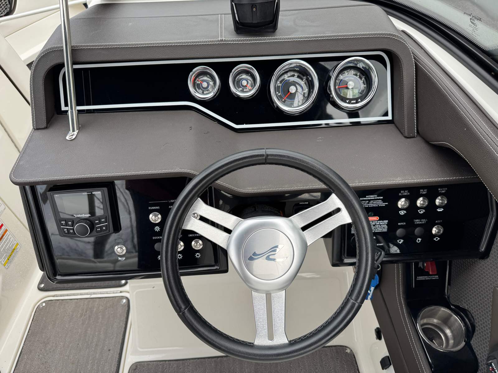 This Sea Ray SLX 230 is loaded with features that enhance both comfort and functionality. The bowrider layout provides spacious seating in the bow and cockpit areas, allowing guests to stretch out and enjoy the ride. The ergonomic helm is designed for ease of use, giving the captain full control and excellent visibility. Premium upholstery and high-quality materials throughout the boat create an inviting atmosphere, while the thoughtful design ensures that every inch of space is utilized efficiently.The SLX 230’s hull design contributes to a smooth, dry ride, even in choppy conditions. The integrated swim platform makes it easy to access the water for swimming or water sports, while the deep bow seating area is perfect for lounging and socializing. Storage compartments are strategically placed to keep gear organized and out of the way, so you can focus on having fun. The overall fit and finish of this Sea Ray boat for sale reflect the brand’s commitment to excellence and attention to detail.