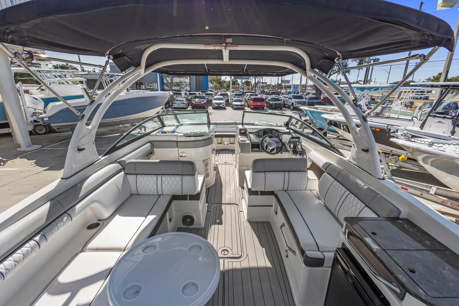Powering the Sea Ray Sundeck 290 are two robust engines, delivering a combined 500 horsepower. With only 371 engine hours, these engines promise reliable performance and plenty of life left for future adventures. The dual-engine setup ensures smooth acceleration, responsive handling, and the ability to reach impressive speeds, whether you’re cruising along the coastline or heading out for a day of watersports. The Sundeck 290’s performance capabilities make it a top choice for those who want both excitement and dependability from their Bowrider boat.