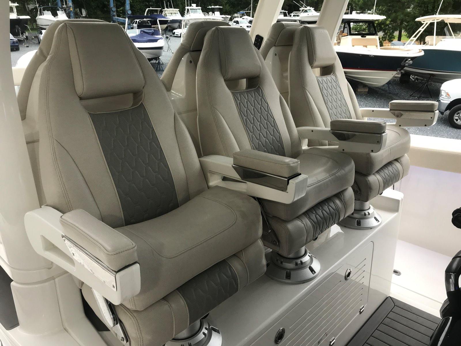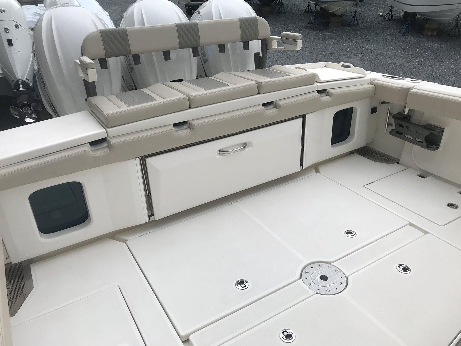 Powering the Solace 41 CS are three Yamaha V8 425 XTO outboard engines, delivering a combined 1275 horsepower. These triple engines, finished in Pearlescent White, offer exhilarating acceleration, smooth cruising, and reliable offshore capability. With the advanced Helm Master system, you’ll enjoy precise control and effortless maneuvering, whether docking in tight spaces or navigating open waters. The low engine hours further ensure that these engines are ready to provide years of dependable performance, making this Center Console boat for sale a smart investment for serious boaters.