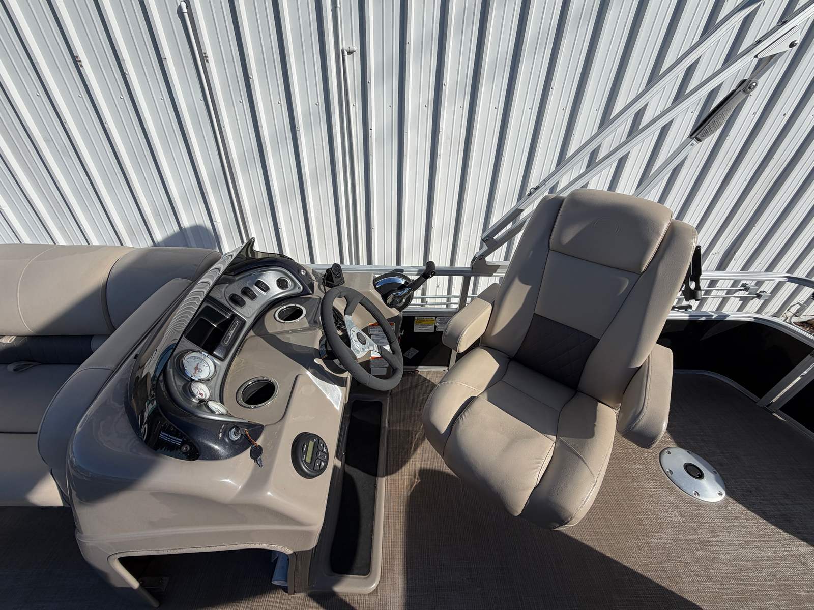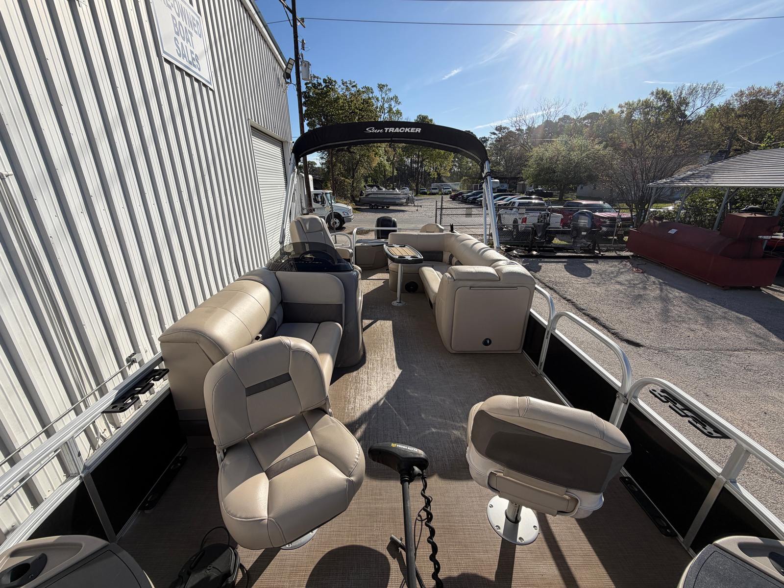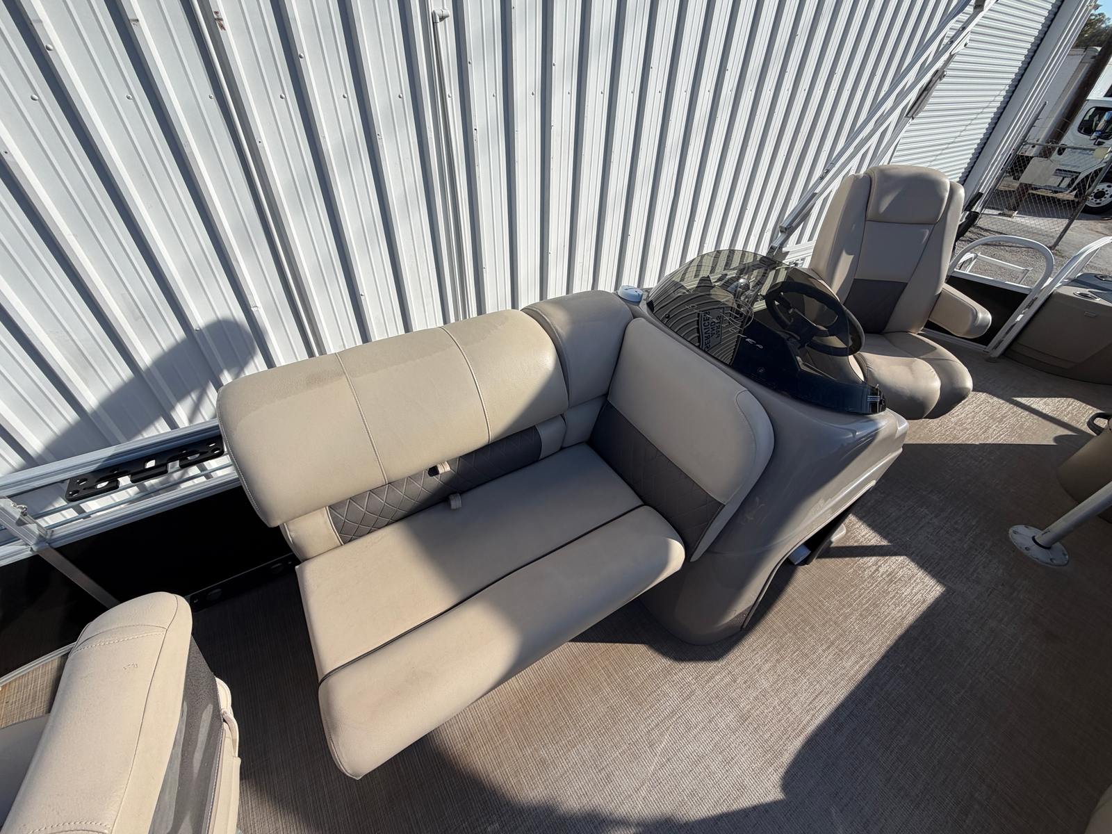 The 2020 Sun Tracker Fishing Barge 20 DLX is thoughtfully designed with features that enhance both comfort and functionality. Its spacious deck layout provides plenty of room for passengers to move about, relax, or cast a line. The pontoon’s sturdy construction ensures stability, making it a safe and enjoyable platform for all ages. The seating is arranged to promote socializing, with plush, comfortable benches that invite you to sit back and enjoy the scenery.This Sun Tracker boat for sale is well-suited for fishing enthusiasts, with dedicated fishing stations and plenty of space for gear. The intuitive layout makes it easy to transition from cruising to casting, ensuring that every outing is as enjoyable as possible. The durable materials and quality craftsmanship mean you can count on this pontoon boat for years of reliable service.