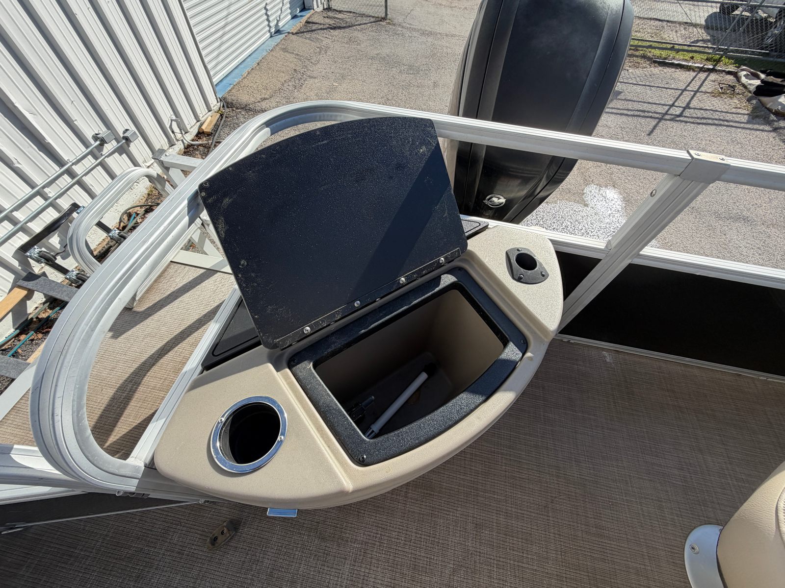 Powered by a single 90-horsepower engine, the Sun Tracker Fishing Barge 20 DLX delivers a smooth and responsive ride. Whether you are gliding across calm waters or heading out to your favorite fishing spot, this pontoon boat offers reliable performance and easy handling. The 90 HP engine strikes the perfect balance between fuel efficiency and power, making it ideal for both leisurely cruises and more spirited outings. With 130 engine hours, you can be confident in the engine’s longevity and continued performance.