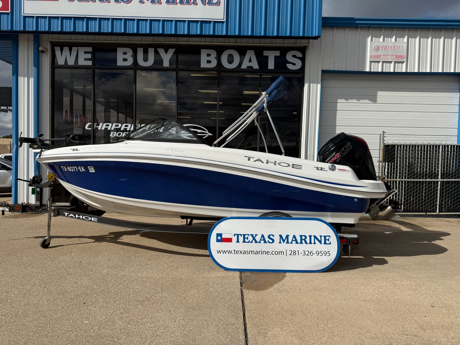 In summary, the 2019 Tahoe 450 TF Bowrider is a standout choice for anyone seeking a used Bowrider boat for sale that delivers on performance, versatility, and fun. With its 115-horsepower engine, spacious 18.42-foot layout, and a suite of special features including a Bimini, Lowrance Electronics Package, single axle trailer with swing tongue, trolling motor, and fishing chairs, this Tahoe boat for sale is ready to elevate your time on the water. Don’t miss the opportunity to own a boat that offers the perfect blend of adventure, comfort, and practicality. Contact the dealer today to learn more about making the Tahoe 450 TF your next boating adventure.