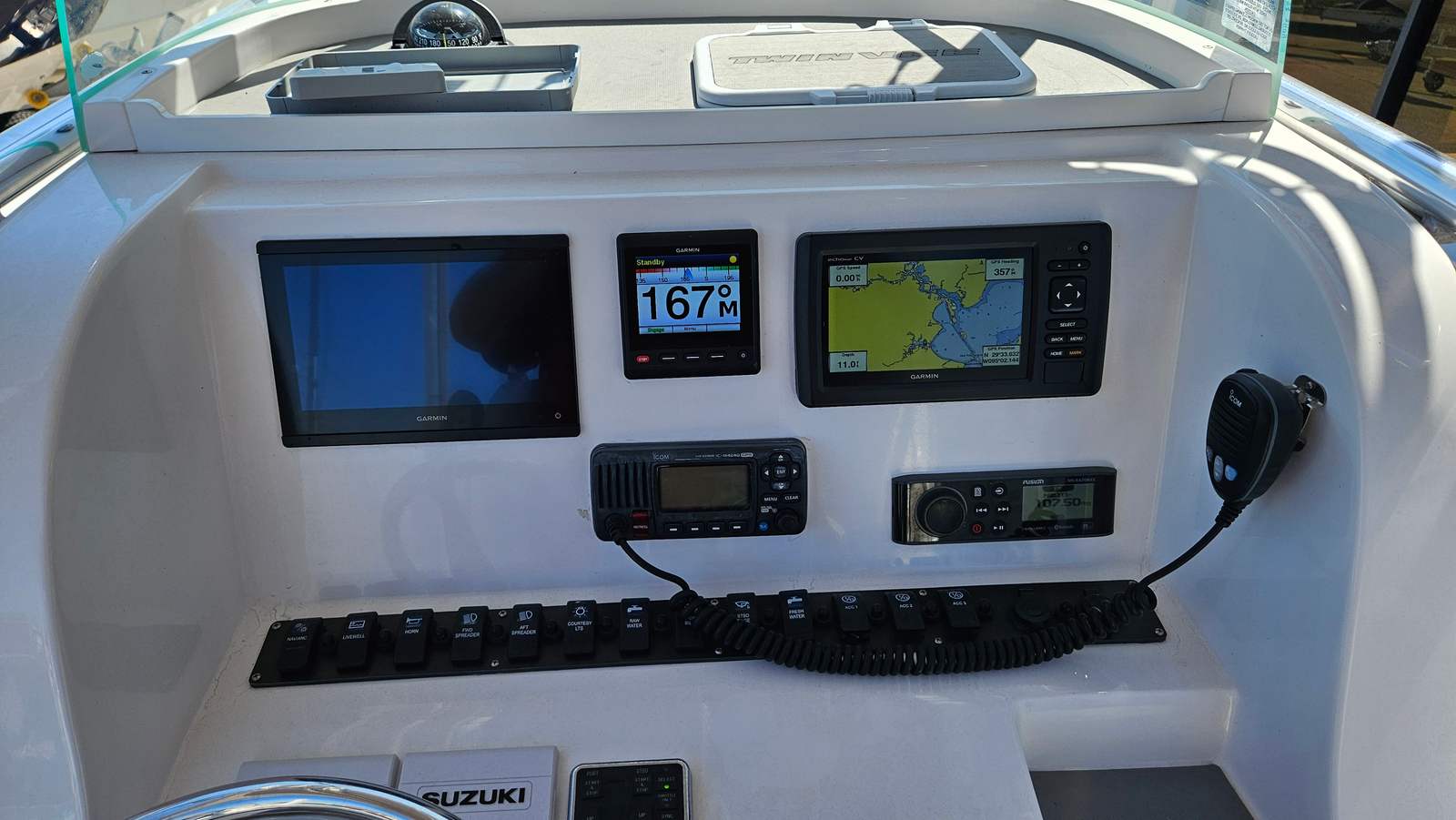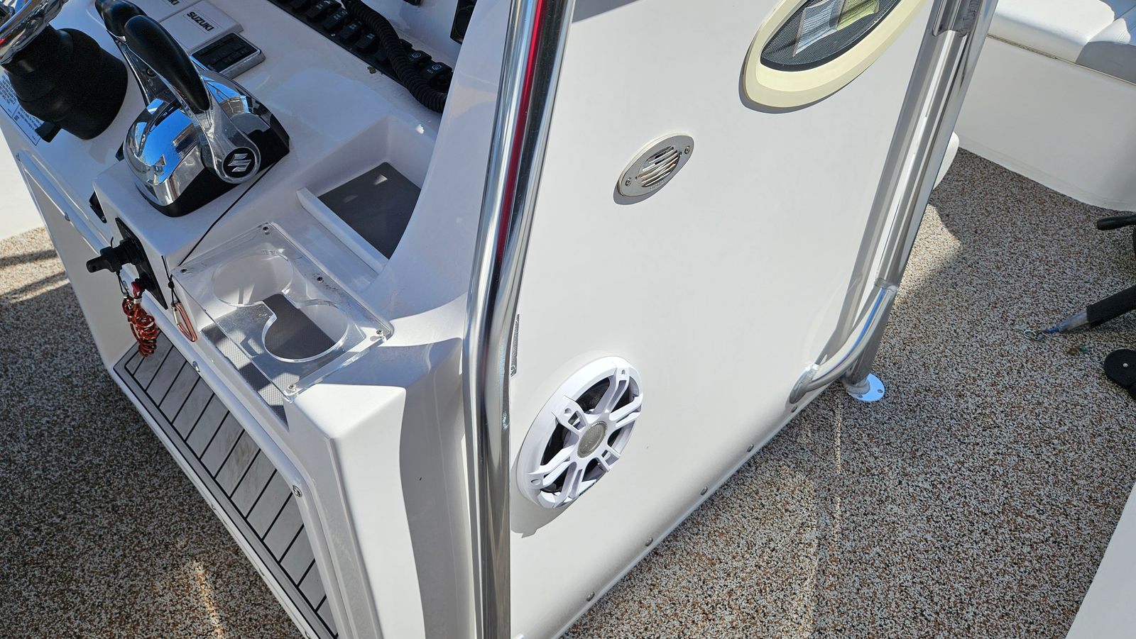 Powering the Twin Vee 260 Viva are twin 4-stroke Suzuki 150hp engines, delivering a combined 300 horsepower. This dual-engine setup ensures smooth acceleration, impressive top-end speed, and reliable handling in a variety of conditions. The 4-stroke technology is renowned for its fuel efficiency and quiet operation, allowing you to enjoy longer days on the water without sacrificing performance. With two engines at your command, you can confidently navigate coastal waters, bays, and offshore fishing grounds, knowing you have the power and redundancy needed for peace of mind.