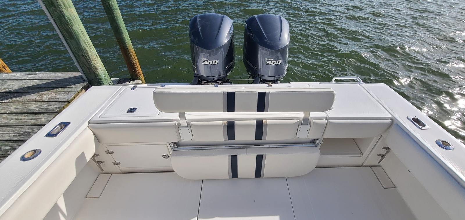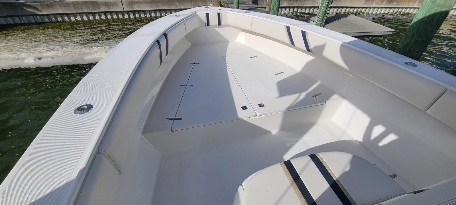 The Venture 34 CC is as practical as it is enjoyable. Its Center Console design makes storage and organization simple, with dedicated spaces for gear, tackle, and personal items. The twin engines not only deliver impressive performance but also contribute to ease of docking and maneuvering in tight spaces. Fuel efficiency is enhanced by the modern engine technology, allowing you to spend more time on the water and less time at the fuel dock.This used Center Console boat is also easy to maintain, thanks to its quality construction and accessible systems. Whether you are trailering to a new destination or keeping the boat in a marina, the Venture 34 CC is designed for hassle-free ownership. The robust build and reliable engines ensure that you can focus on enjoying your time on the water, rather than worrying about maintenance or repairs.