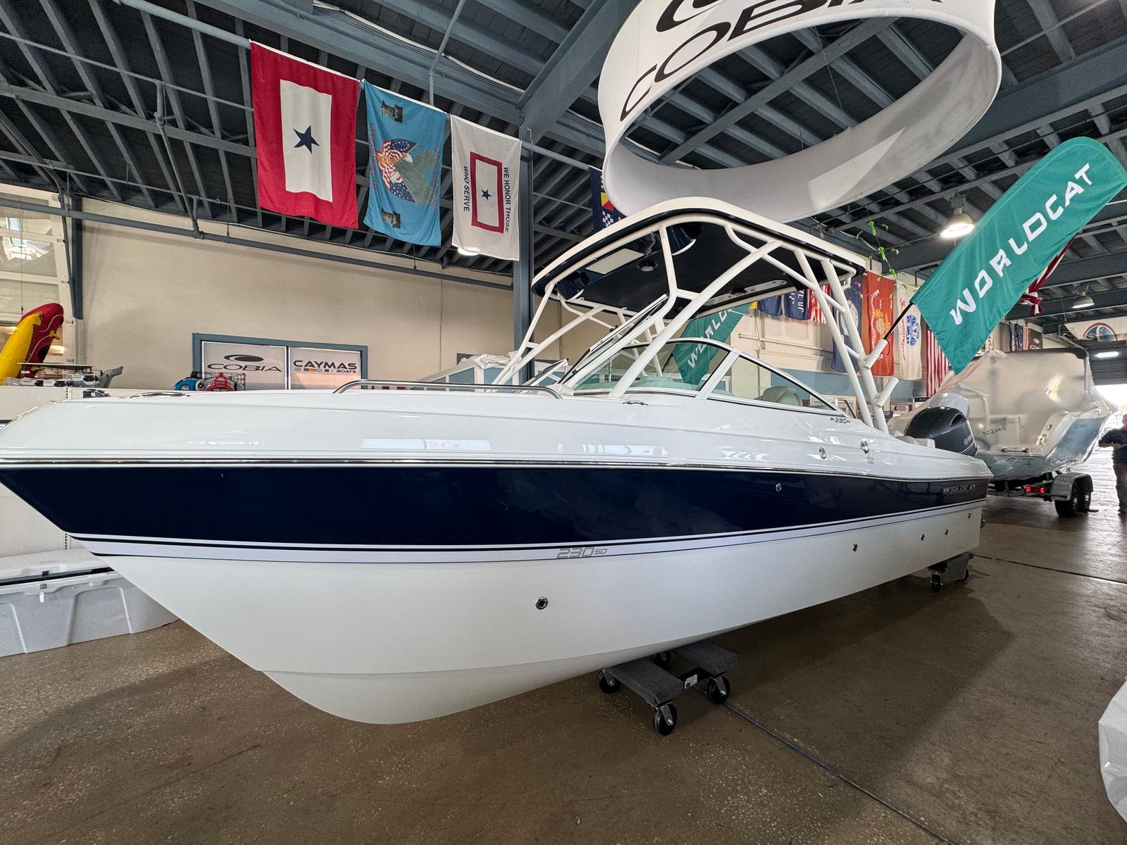 The 2025 World Cat 230 SD is a Dual Console boat measuring an impressive 22.58 feet in length. This model is renowned for its stability, spacious layout, and smooth ride, making it a top contender among World Cat boats for sale. The 230 SD’s catamaran hull design ensures a comfortable experience even in choppy waters, while its modern styling and thoughtful layout provide ample space for socializing and recreation. With only 23 engine hours, this used boat is in excellent condition, offering the next owner many years of enjoyment.