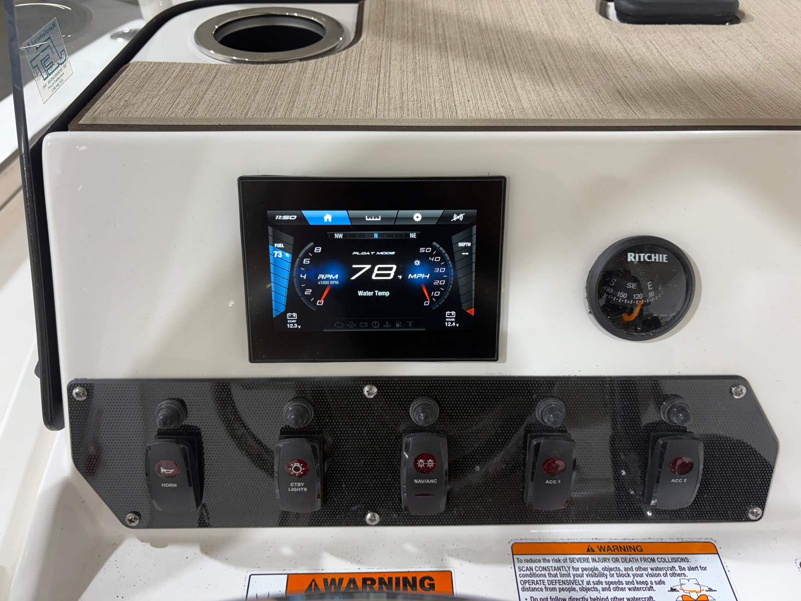 At the heart of the Yamaha 195 FSH Sport is a powerful single engine delivering an impressive 250 horsepower. With only 1 engine hour, this jet boat is virtually brand new, offering the latest in Yamaha engineering and efficiency. The jet propulsion system provides smooth acceleration, responsive handling, and exceptional maneuverability, allowing you to navigate shallow waters and tight spaces with ease. Whether you’re chasing the perfect fishing spot or enjoying a high-speed run across the lake, the Yamaha 195 FSH Sport’s performance capabilities ensure a thrilling and safe ride every time. The jet drive also enhances safety for swimmers and water sports enthusiasts, as there are no exposed propellers.
