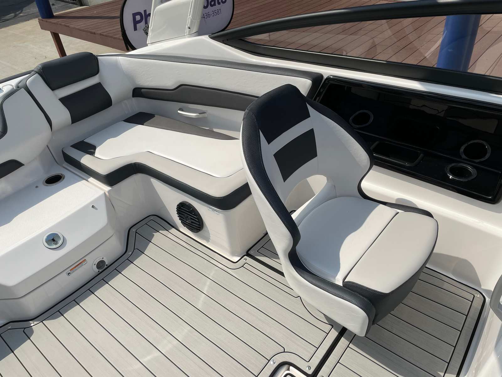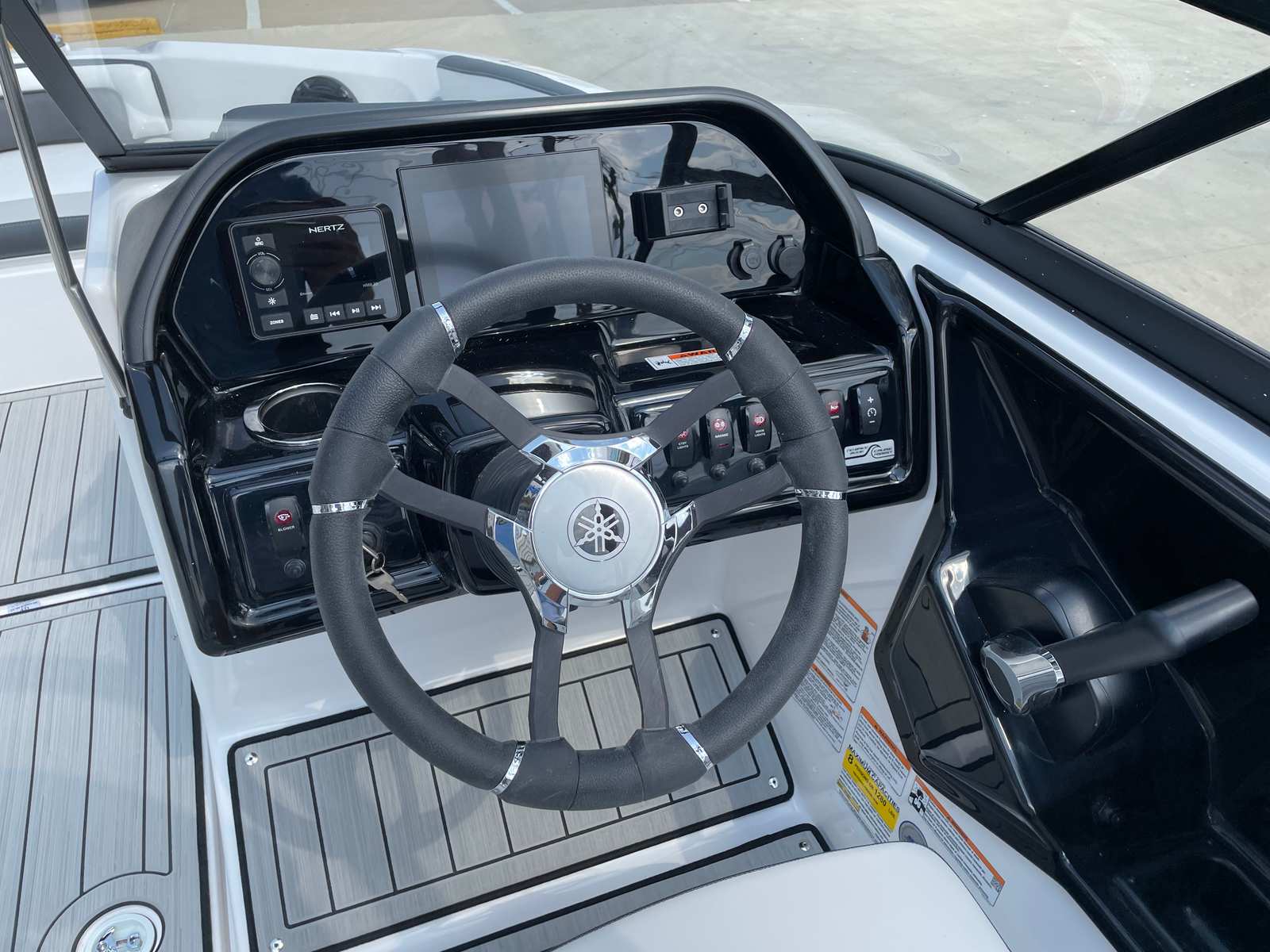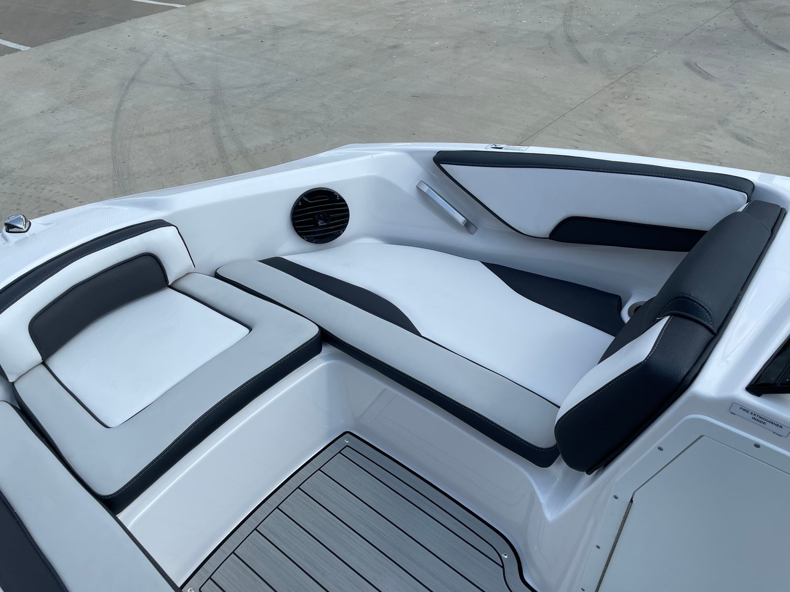The Yamaha 195 S is packed with features that set it apart in the world of jet boats. Its thoughtfully designed cockpit offers ample seating for family and friends, ensuring everyone can relax and enjoy the ride. The intuitive helm station puts all controls within easy reach, allowing the captain to navigate with confidence and ease. The spacious bow area provides additional seating and lounging space, perfect for sunbathing or socializing. The boat’s innovative storage solutions make it easy to stow away gear, water toys, and personal items, keeping the deck clutter-free and organized. Every detail of the Yamaha 195 S is crafted to enhance your time on the water, from the premium upholstery to the stylish accents that reflect Yamaha’s signature attention to detail.