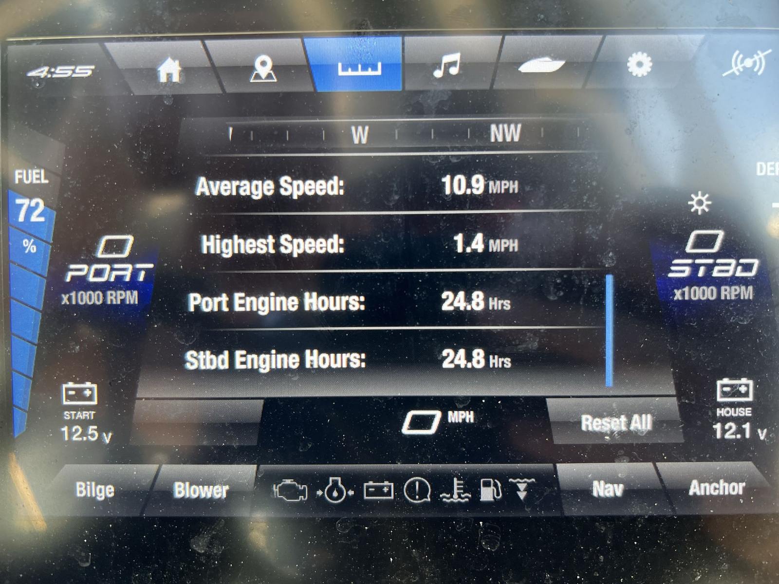 Under the hood, the Yamaha 222 S is powered by twin engines, delivering a combined 400 horsepower for thrilling acceleration and responsive handling. The dual-engine setup ensures optimal maneuverability, allowing you to navigate tight turns, shallow waters, and busy docks with confidence. Whether you are cruising at a leisurely pace or pushing the throttle for high-speed excitement, this jet boat offers a performance profile that is both exhilarating and reliable. With only 24 engine hours, the powerplants are barely broken in, promising many more seasons of dependable fun on the water.