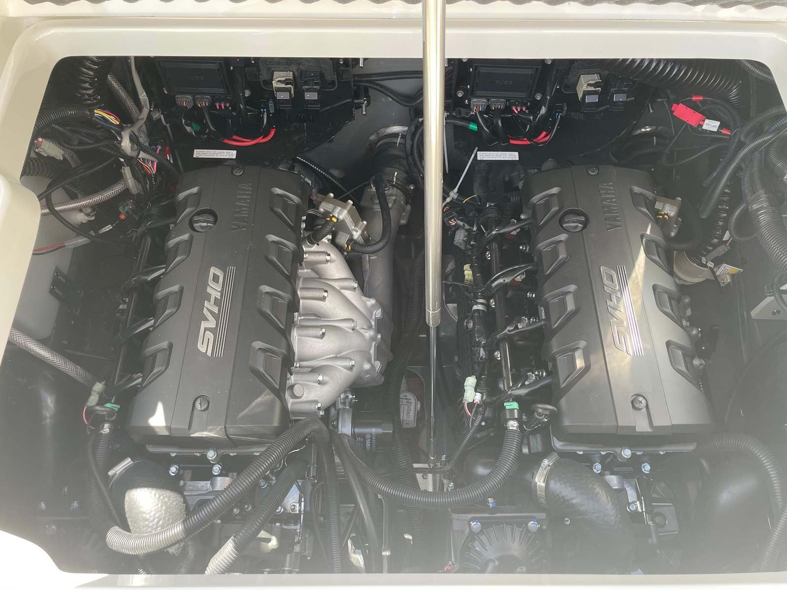 Under the hood, the Yamaha 255 FSH Sport E is powered by twin engines, delivering a combined 500 horsepower. This impressive powertrain provides exhilarating acceleration, responsive handling, and smooth cruising at any speed. The dual-engine setup ensures optimal balance and maneuverability, making it easy to navigate tight turns or glide across open water. Whether you are chasing the thrill of high-speed runs or enjoying a leisurely cruise, this jet boat offers a dynamic and engaging ride every time you hit the throttle.The advanced jet propulsion system not only enhances performance but also provides a safer and more enjoyable experience for everyone on board. With no exposed propellers, you can confidently swim, dive, or enjoy water sports right off the back of the boat. The Yamaha 255 FSH Sport E’s innovative engineering ensures that every journey is as exciting as it is safe.