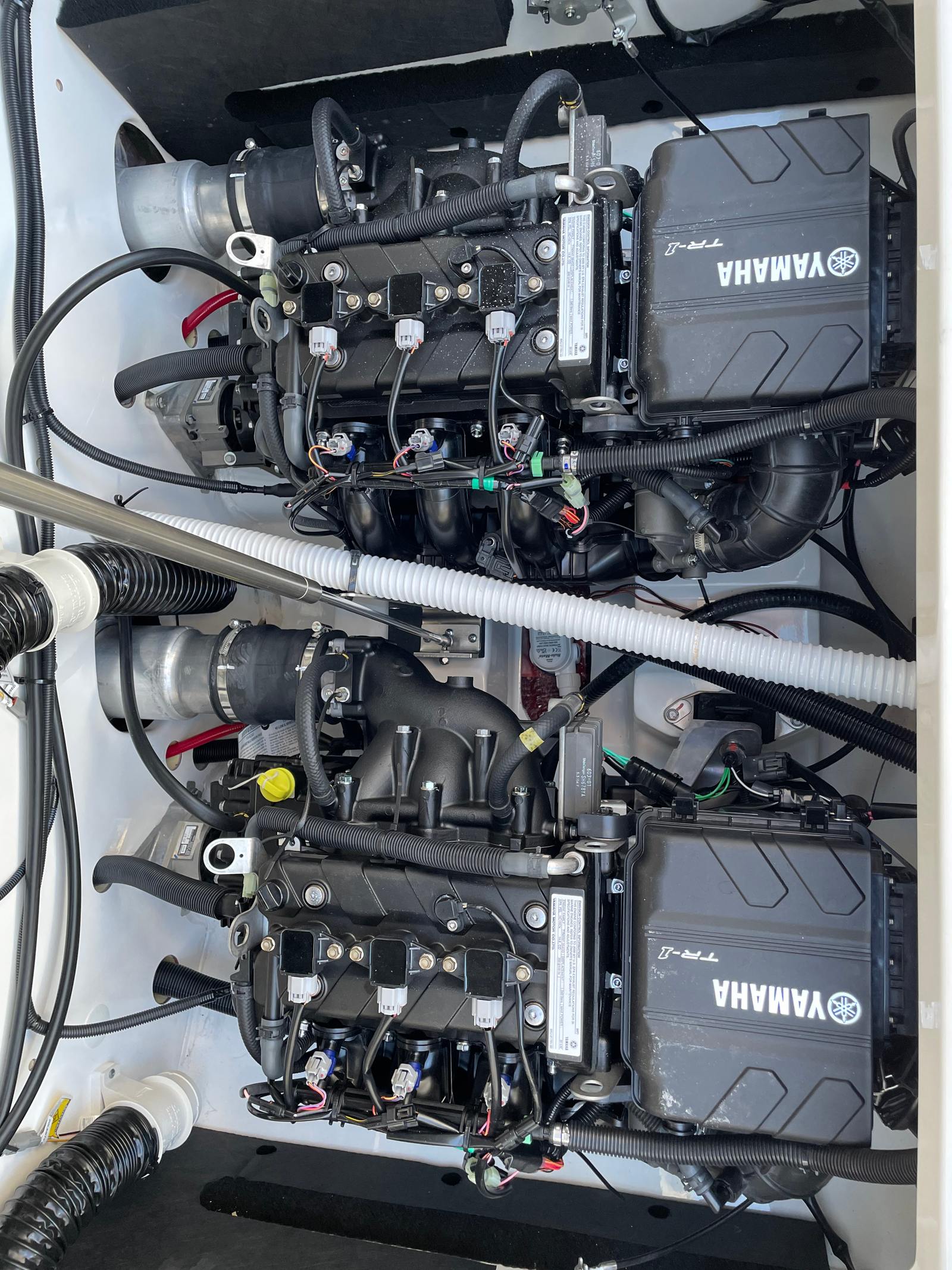 Under the hood, the Yamaha AR220 is powered by twin engines, each delivering 200 horsepower. This impressive setup provides a total of 400 horsepower, giving you the acceleration and agility you need to conquer open water, navigate tight turns, or tow water sports enthusiasts with ease. The dual-engine configuration ensures smooth handling and responsive control, making every ride exhilarating yet safe. Whether you’re cruising at a leisurely pace or unleashing the full power of the AR220, you’ll appreciate the seamless blend of performance and efficiency that Yamaha jet boats are known for.