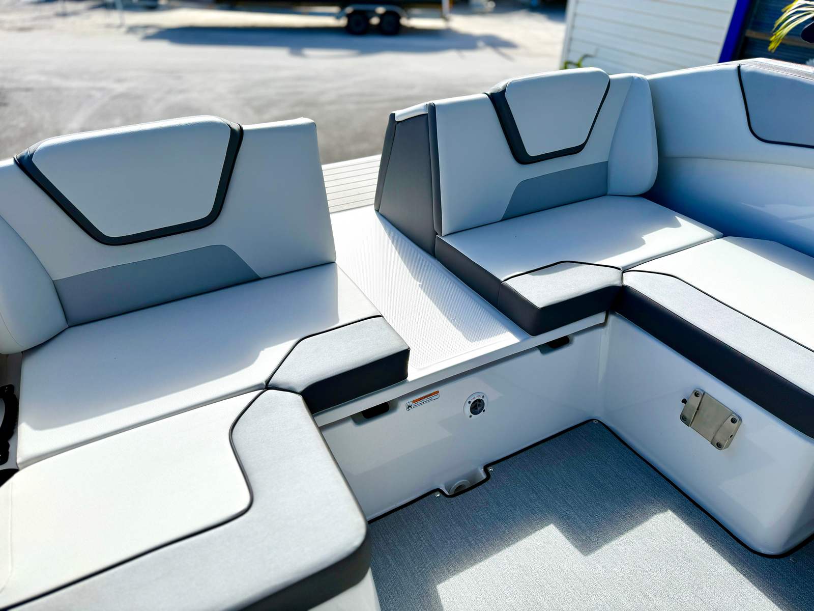 The 2026 Yamaha AR220 is packed with features that elevate your time on the water. Its spacious layout is designed for comfort and convenience, with plenty of room to relax, socialize, or gear up for water sports. The innovative design maximizes every inch of the 22-foot length, providing generous seating and storage options for all your boating essentials. The AR220’s advanced jet propulsion system ensures a smooth, quiet ride, while the modern helm puts you in complete control with intuitive controls and clear instrumentation. The boat’s sleek lines and contemporary styling make it a standout choice for anyone seeking a Yamaha boat for sale that blends performance with aesthetics.