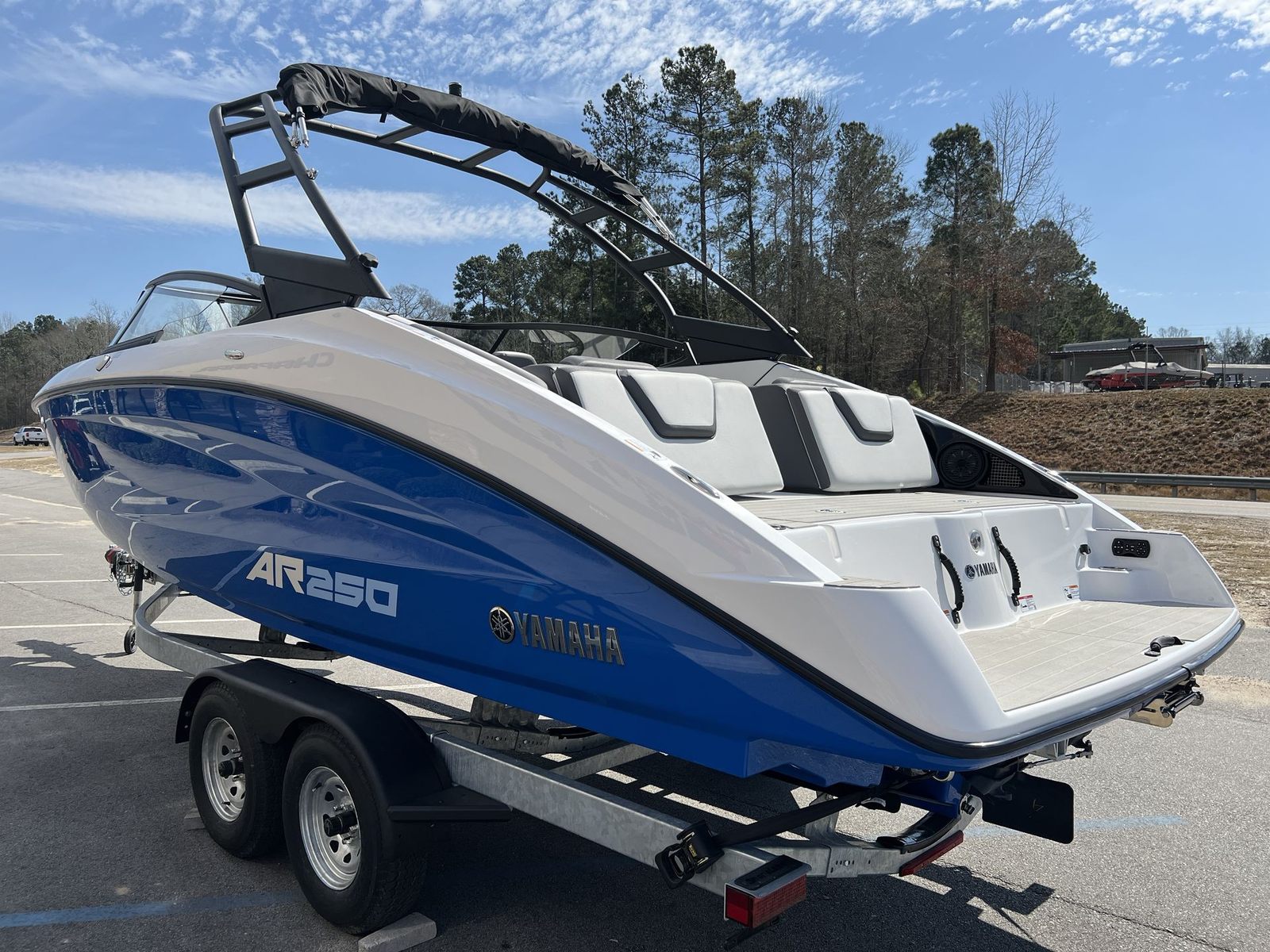 The 2025 Yamaha AR250 is a brand-new jet boat that measures an impressive 24.5 feet in length, offering ample space for passengers and gear. With its sleek lines and modern aesthetics, this Yamaha boat for sale stands out on any dock or marina. The AR250 is designed for those who crave excitement and versatility, making it an ideal choice for water sports enthusiasts, families, and anyone who loves spending time on the water. Its spacious layout ensures comfort and convenience, while the innovative design reflects Yamaha’s commitment to quality and reliability.